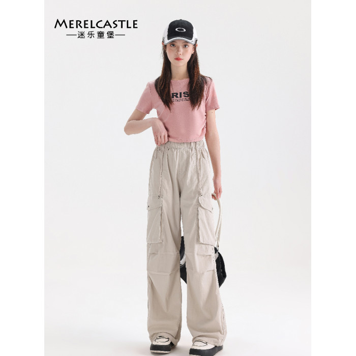 【CC家居控】女童工裝褲潮酷濶腿褲女大童薄款寬松褲子C4795