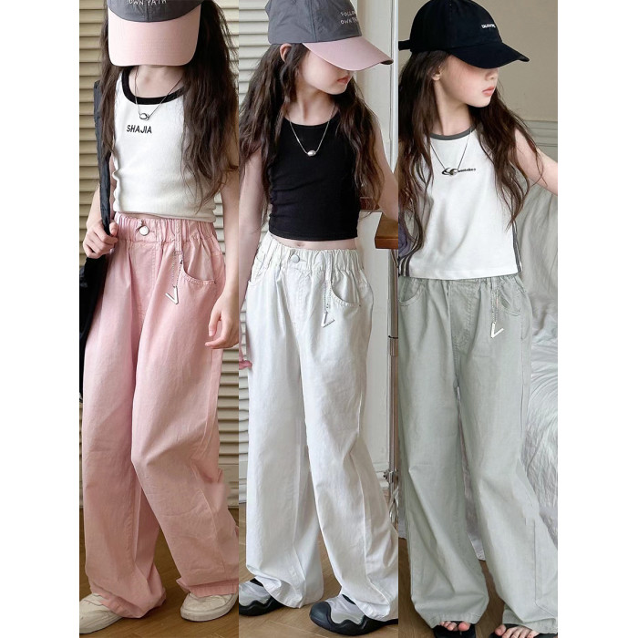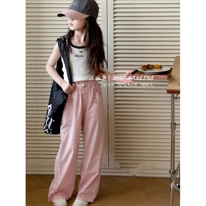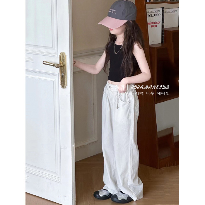 波拉韓女童牛仔褲薄款小女孩寬松直筒褲2025夏季中大童洋氣長褲子