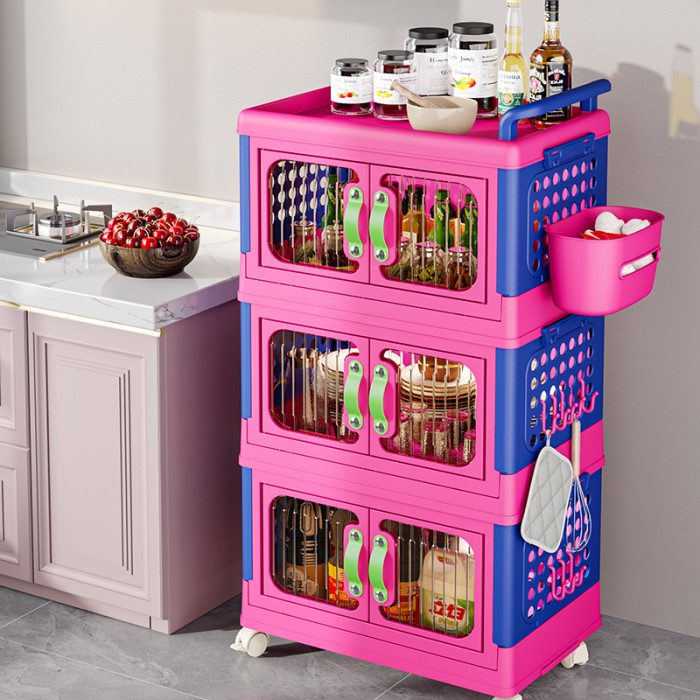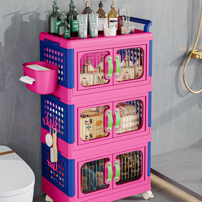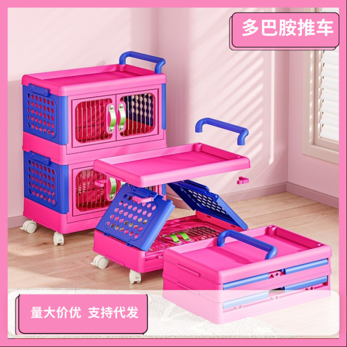 小推車多巴胺風格家用多層收納櫃客廳零食置物架書包書本收納櫃