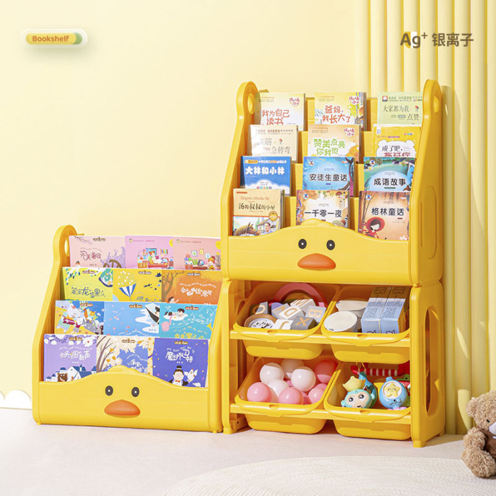 兒童書架家用落地置物架一體書櫃塑膠寶寶繪本架玩具收納架置物架