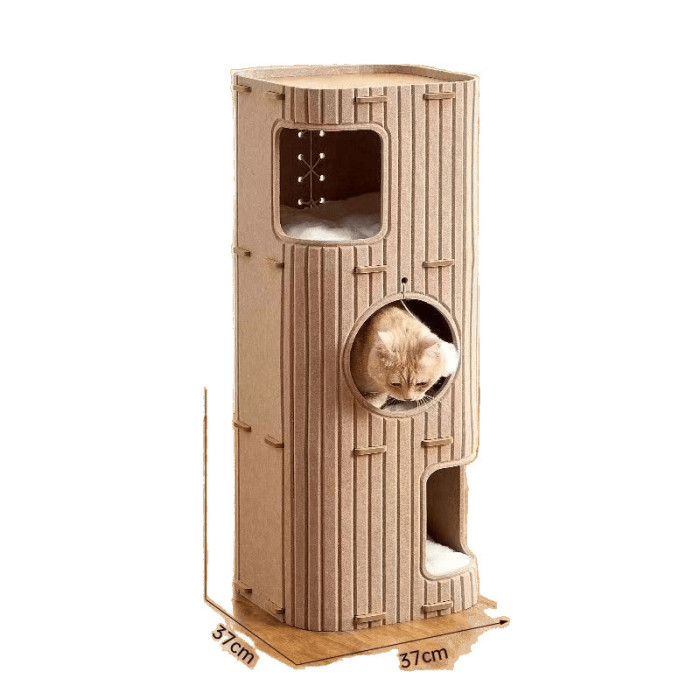 多層樹洞貓窩毛氈板貓爬架貓咪樹洞窩:冬季保暖雙層封閉式貓屋