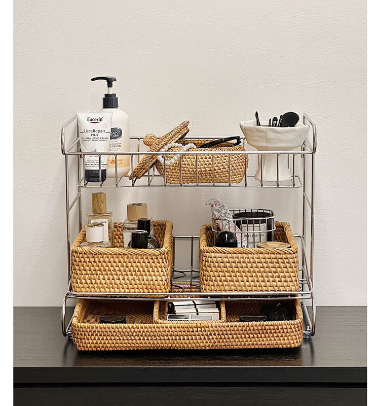 輕奢高級感304不鏽鋼多功能三層香水化妝品台面收納整理置物架