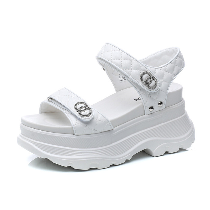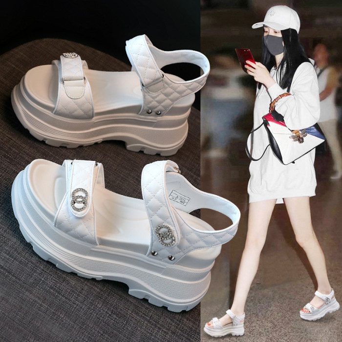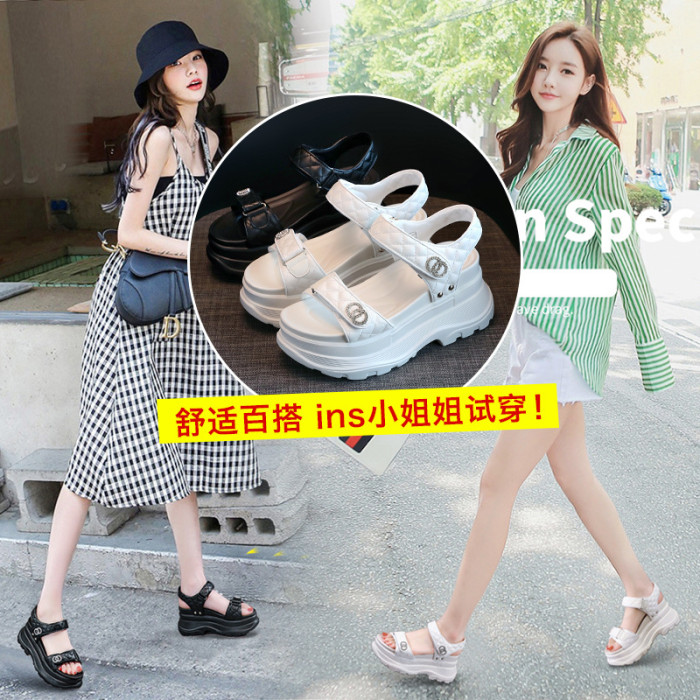 網紅涼鞋女夏外穿ins仙女風2025年新款超火厚底百搭8cm增高水鑽