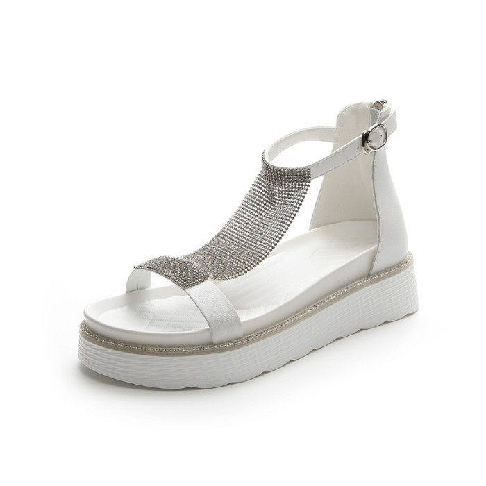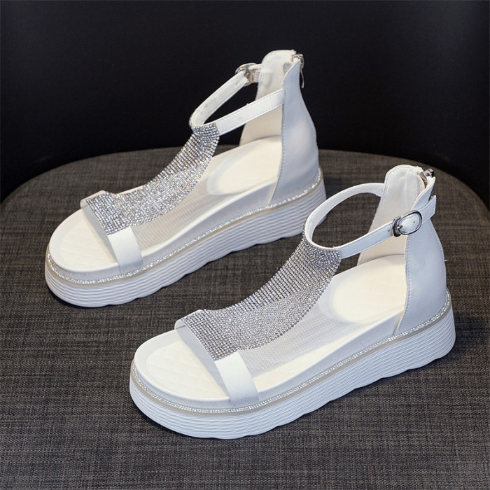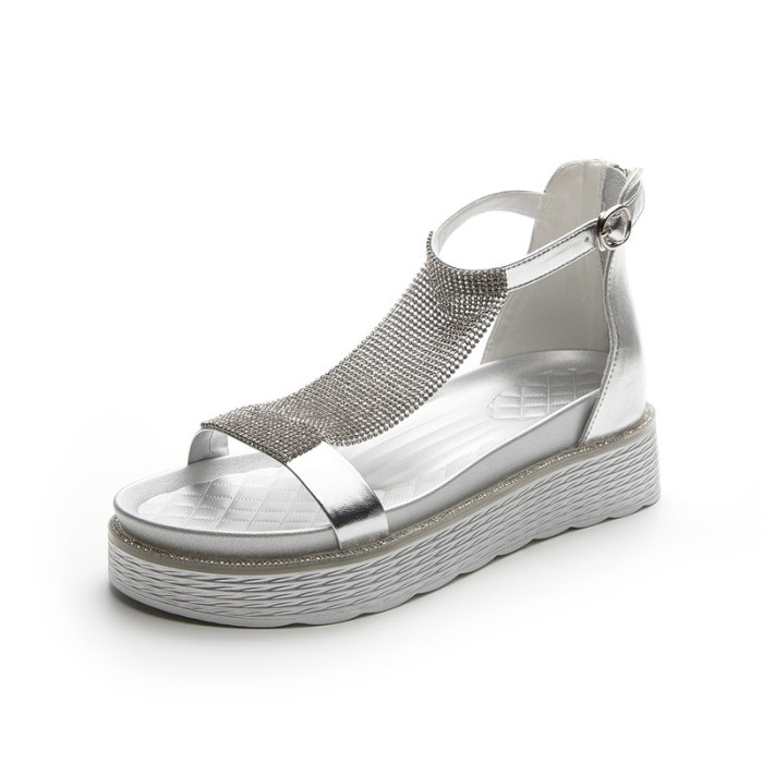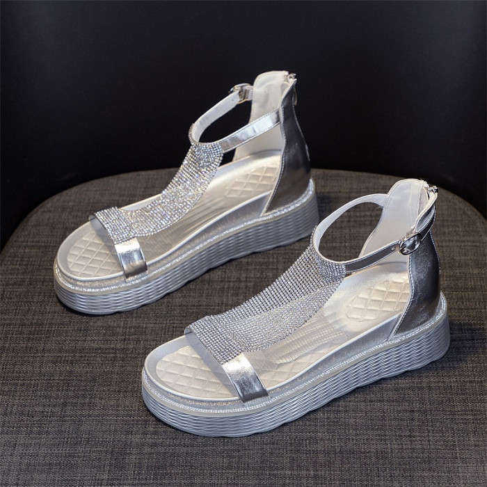 2025年夏季新款坡底涼鞋女款平底羅馬網紅超火休閒時尚水鑽松糕鞋