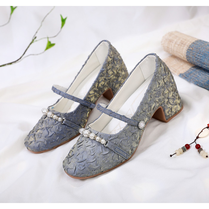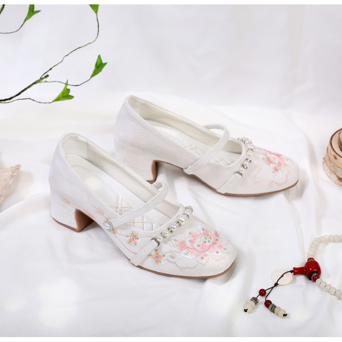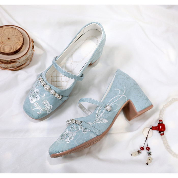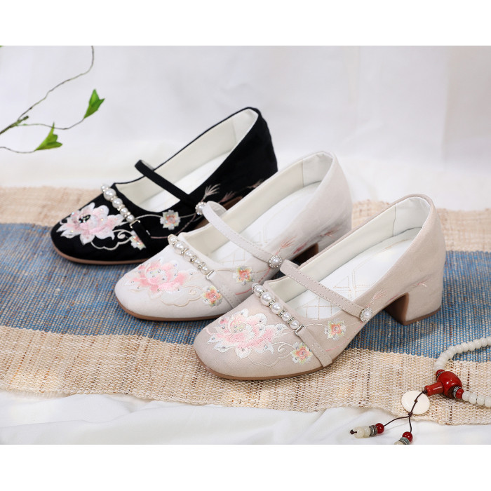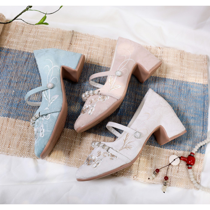 新款漢服馬面裙綉花鞋時尚高跟漢服鞋女氣質百搭瑪麗珍旗袍舞蹈鞋