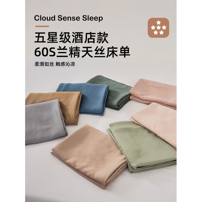 五星級酒店60支蘭精天絲床單單件夏季涼感裸睡冰絲單雙人純色炕單