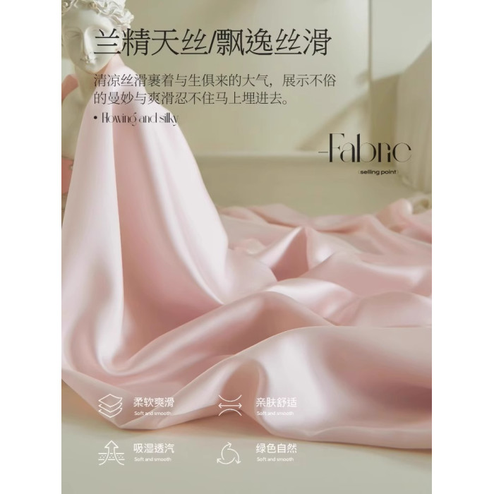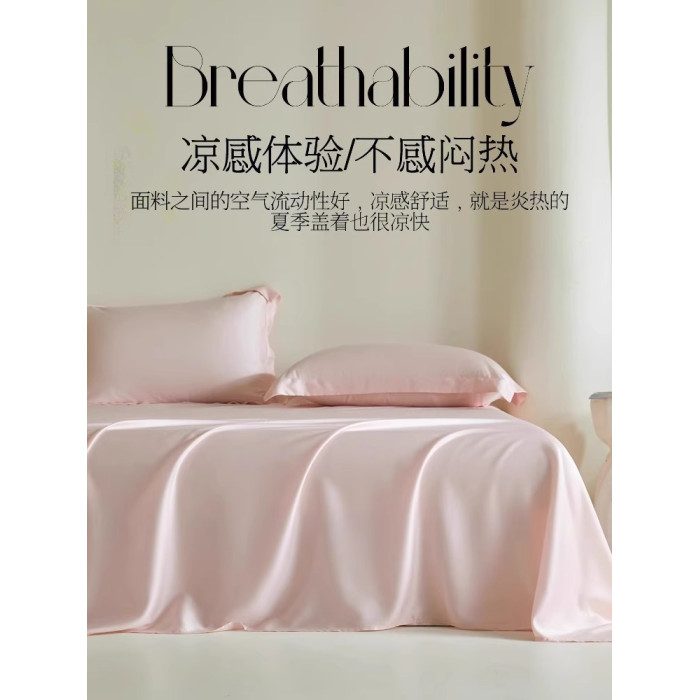 夏季高級天絲床單單件輕奢裸睡學生宿舍單人真絲被單枕套三件套3