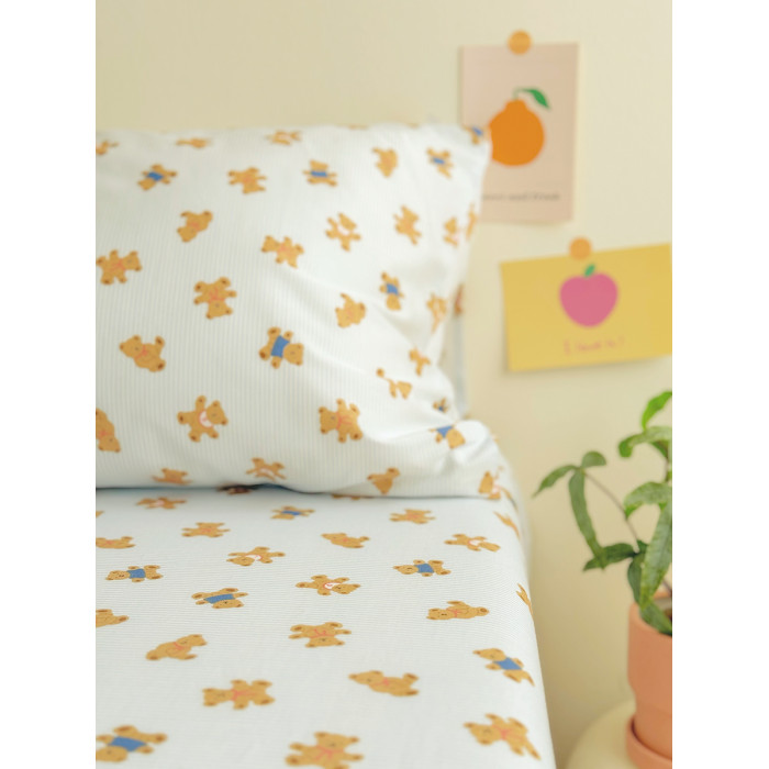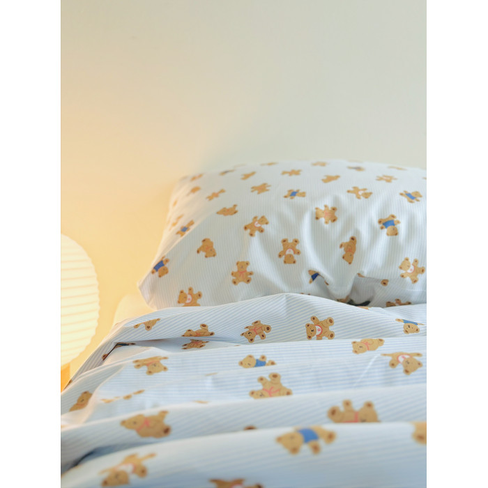 藍色條紋小熊春夏季純棉床單枕套三件套全棉1.5m雙人單件學生床品