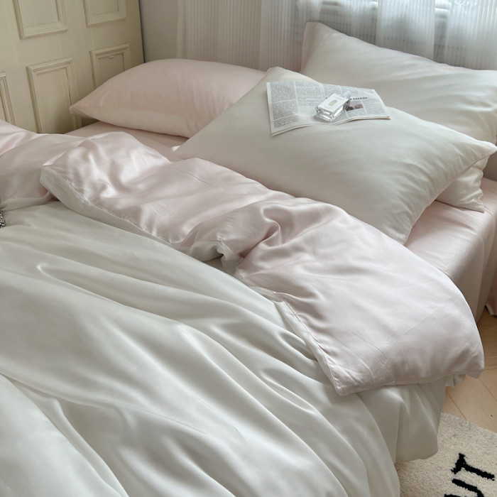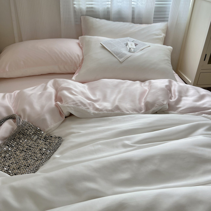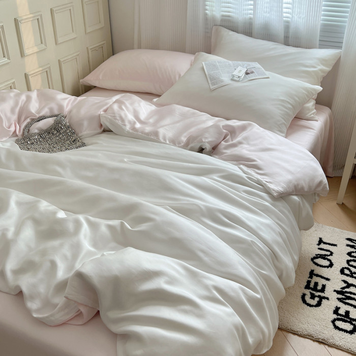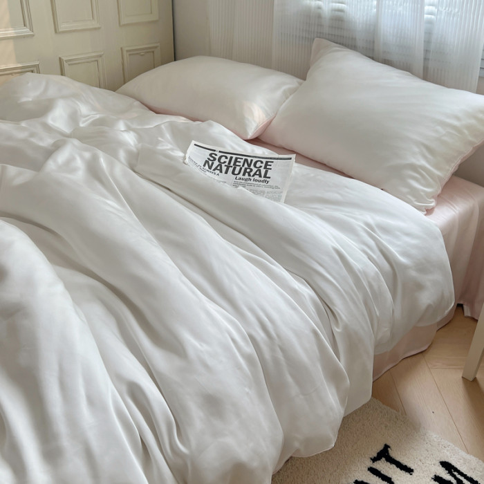 ins高級純色夏季極簡風少女冰絲親膚床單四件套宿舍涼感1.2米床品