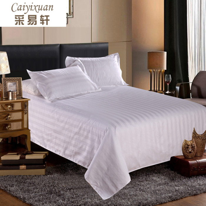 酒店全棉緞條床單純棉加厚白色旅館醫院學生被單單件賓館專用床單