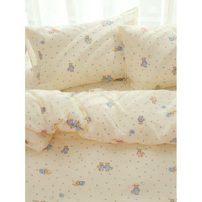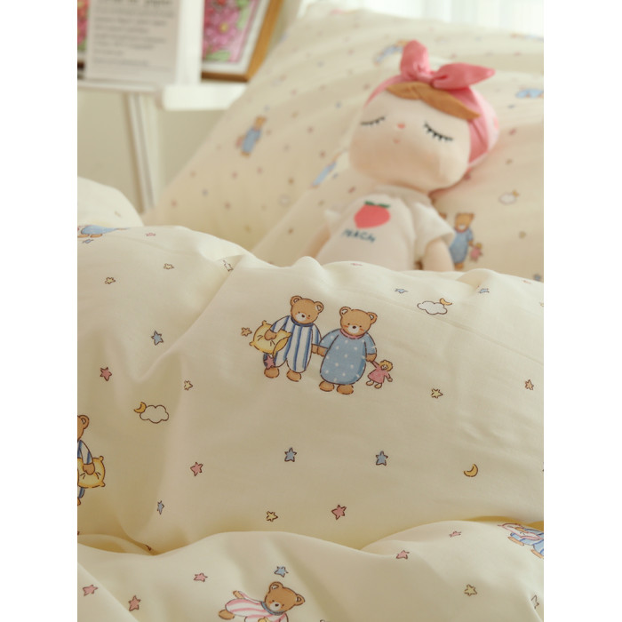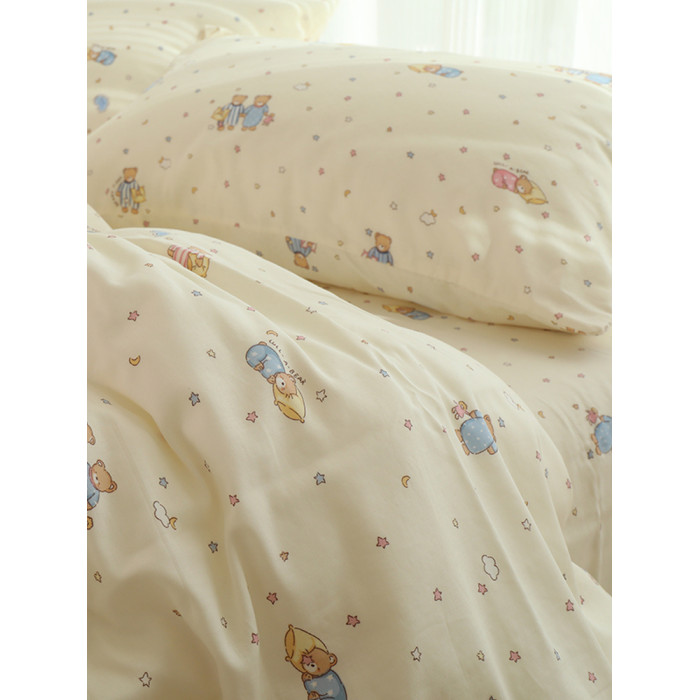 晚安小熊卡通兒童嬰兒a類母嬰級雙層紗布夏季床單單件純棉100全棉