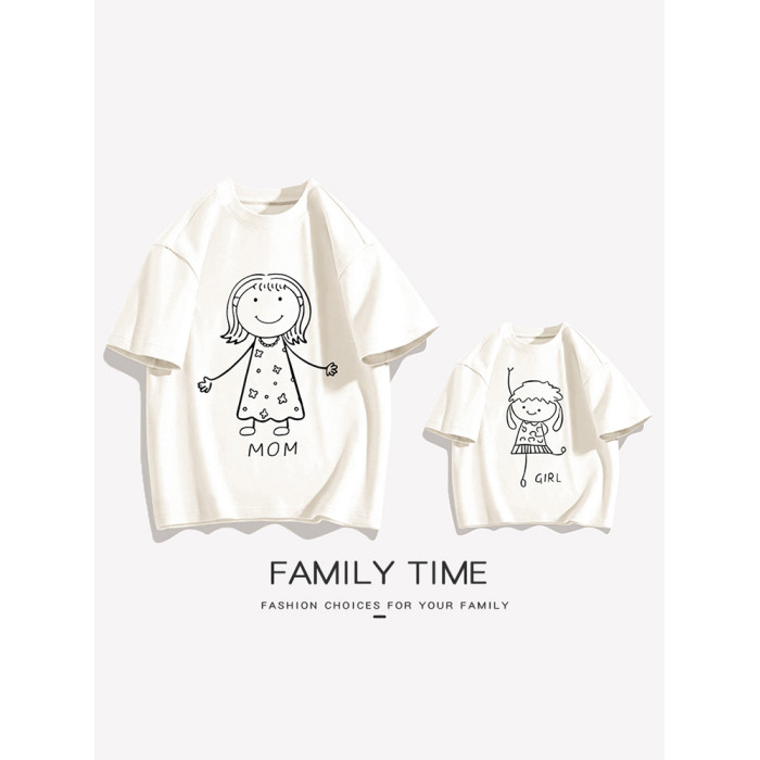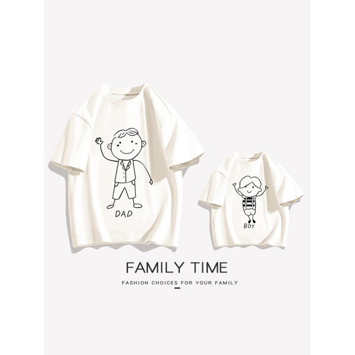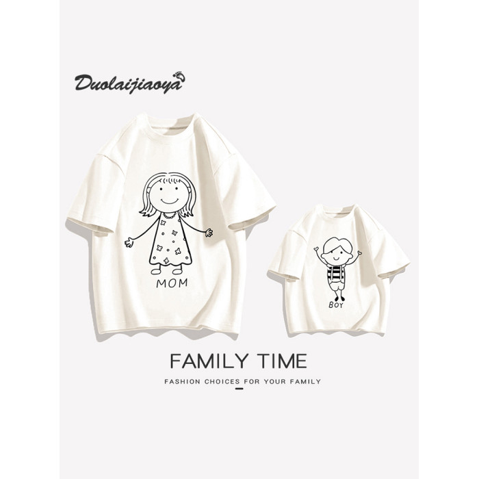 親子裝一家三口夏裝白色上衣夏季新款炸街母子全家福短袖親子T恤