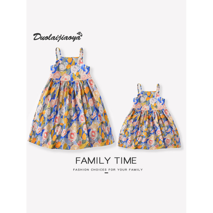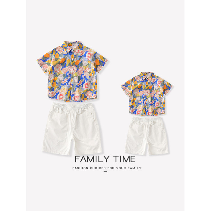 海邊度假親子裝襯衫一家三口短袖夏季2025新款全家裝母女沙灘裙潮