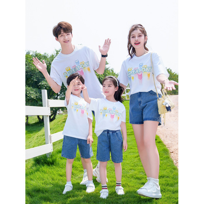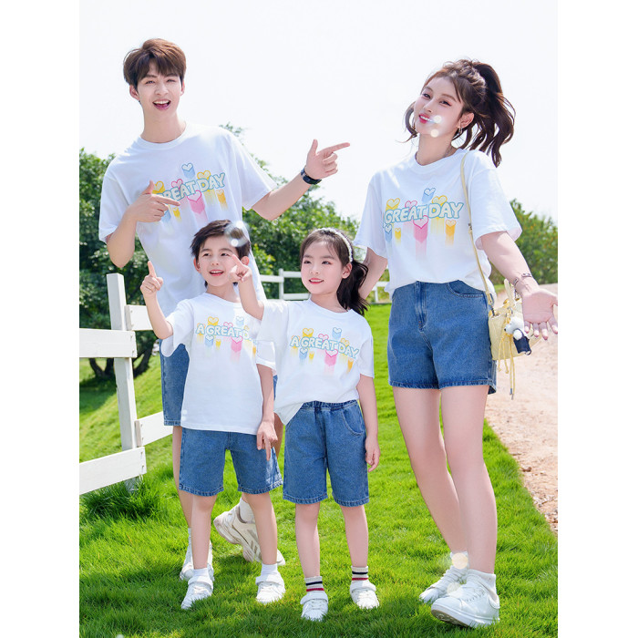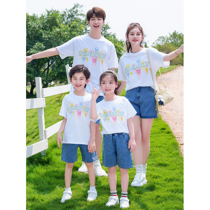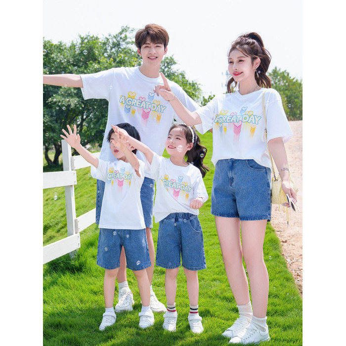 親子裝一家三口四口短袖t恤純棉2025新款夏季套裝母女母子全家裝