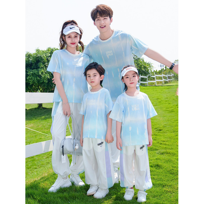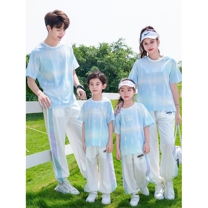 親子裝2025新款夏季一家三口四口短袖t恤幼兒園活動母子母女套裝