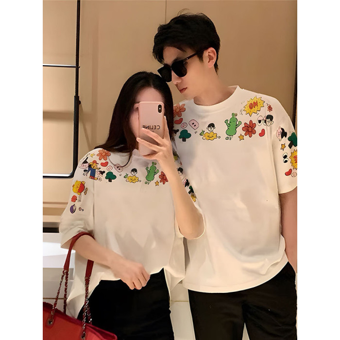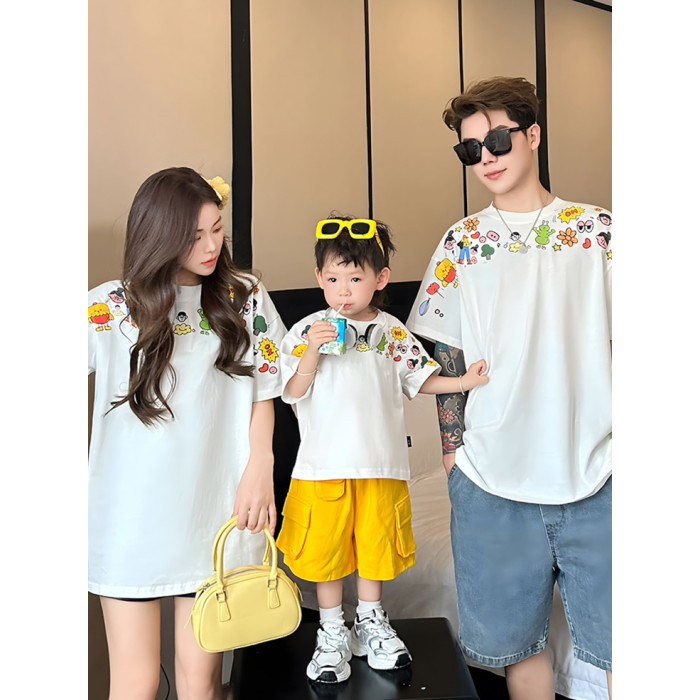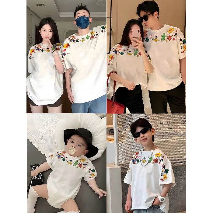 親子裝一家三口四口短袖t恤2025新款夏季寬松半袖T恤嬰兒裝全家裝