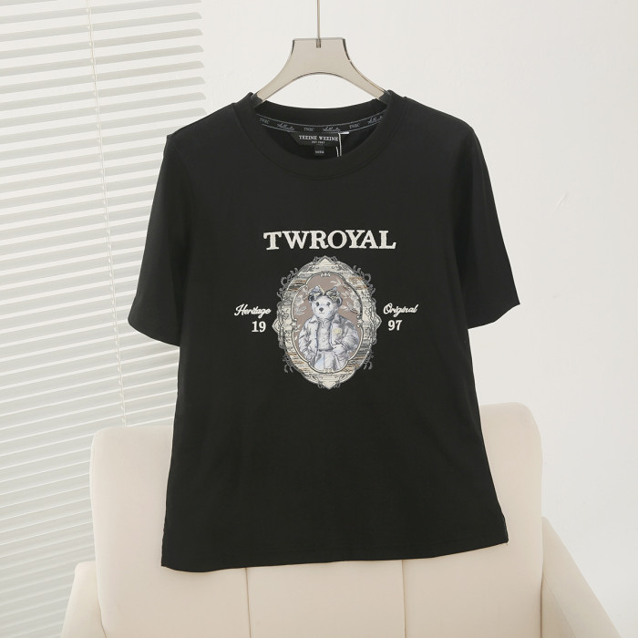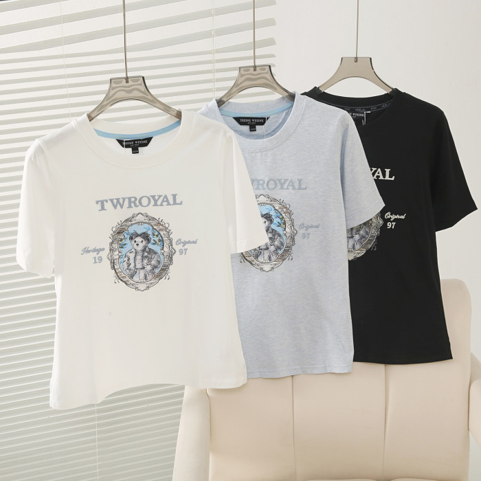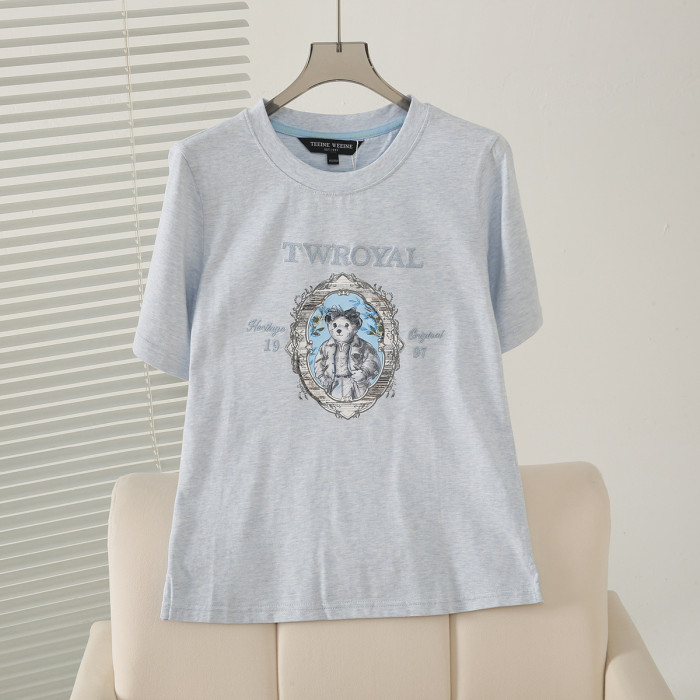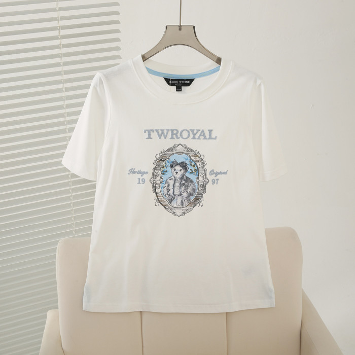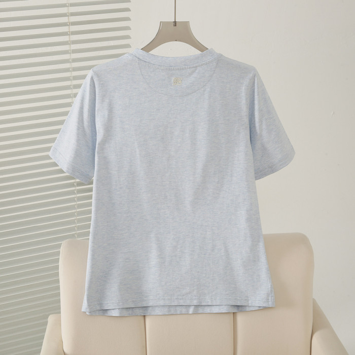 2025夏季新款學院風休閒寬松萬針刺綉圓領短袖T恤女TTRA252501W
