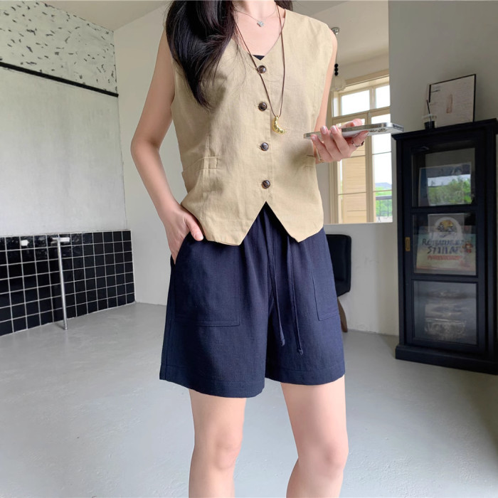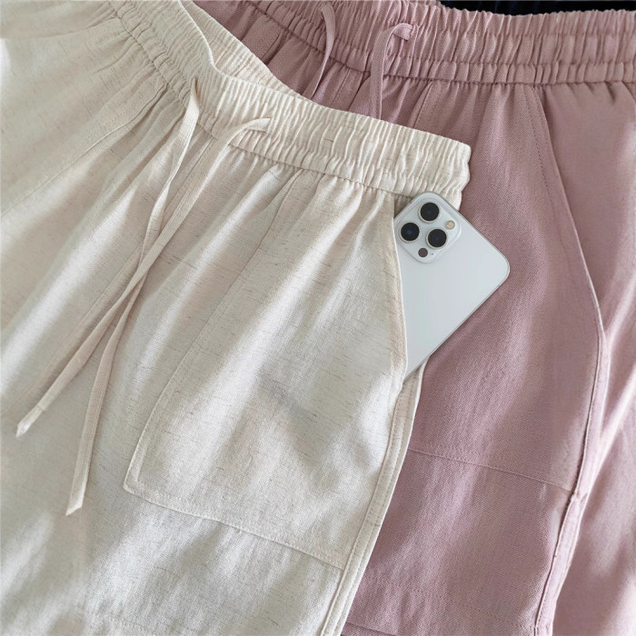 棉麻松緊腰短褲女大碼夏季薄款胖妹妹mm寬松顯瘦休閒三分濶腿褲子