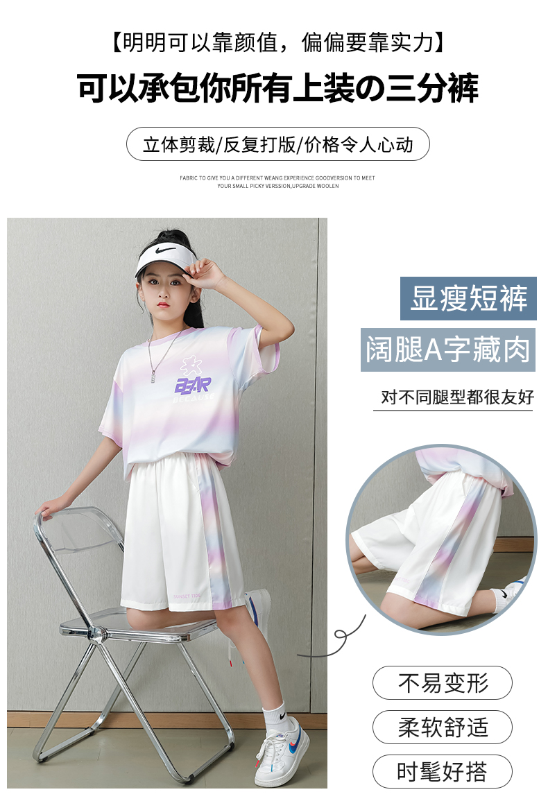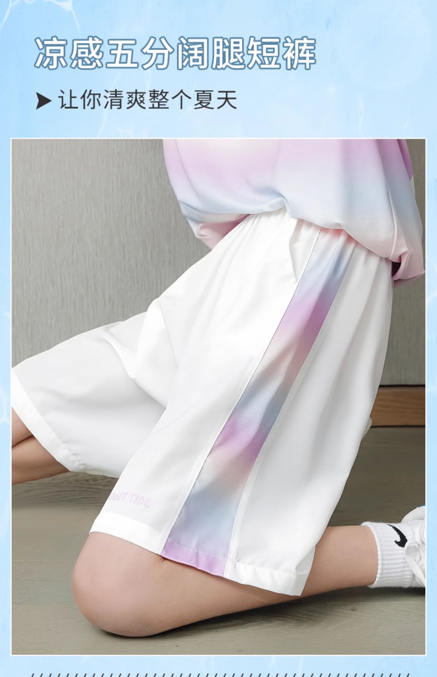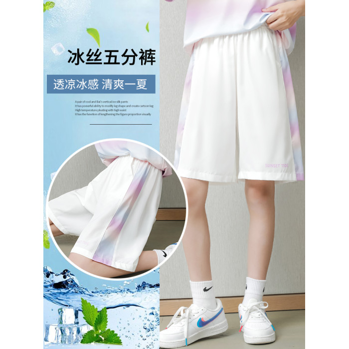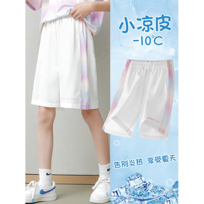 女童五分褲夏季2025新款女大童外穿薄款冰絲短褲兒童運動速乾褲子