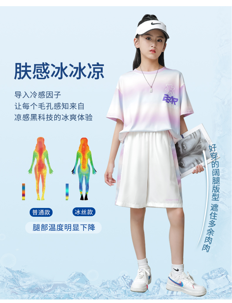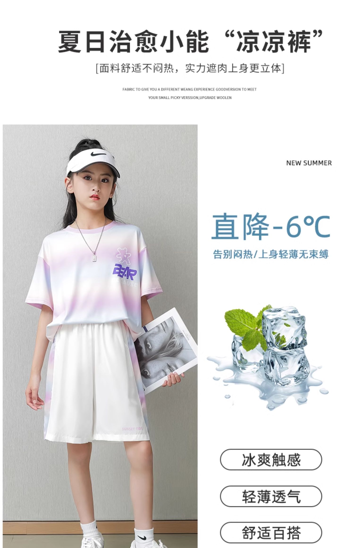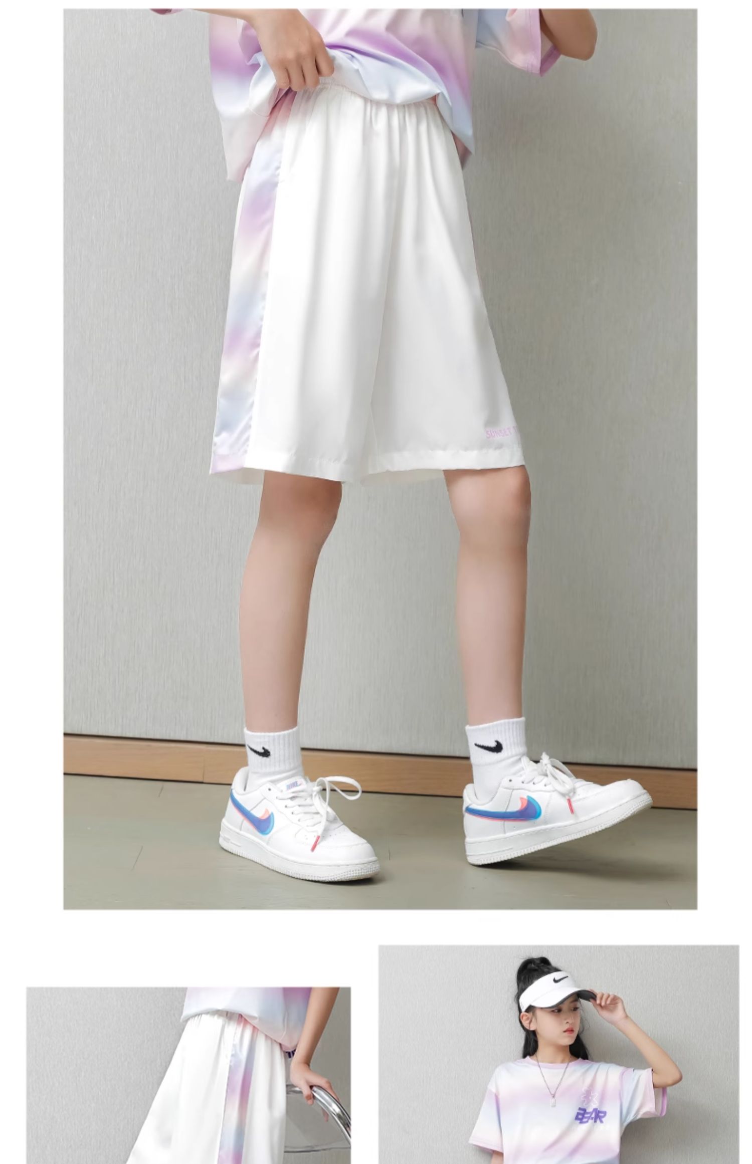 女童五分褲夏季2025新款女大童外穿薄款冰絲短褲兒童運動速乾褲子