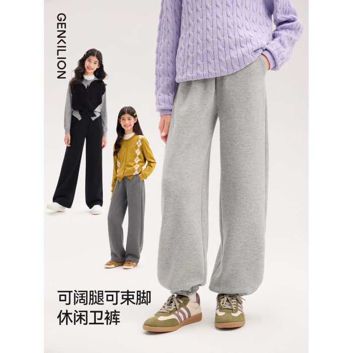 女童褲子春秋薄款衛褲2025新款中大童濶腿褲兒童運動褲休閒直筒褲