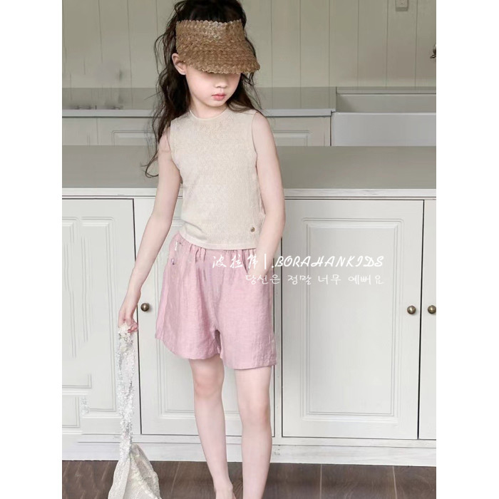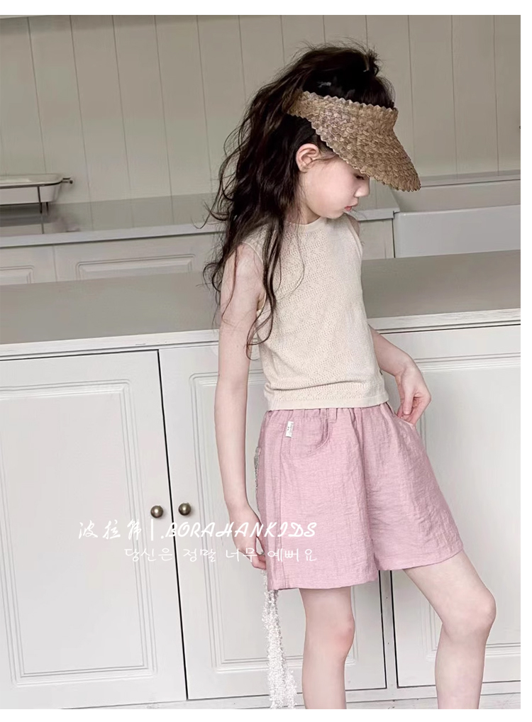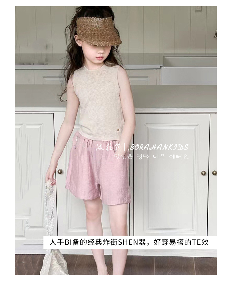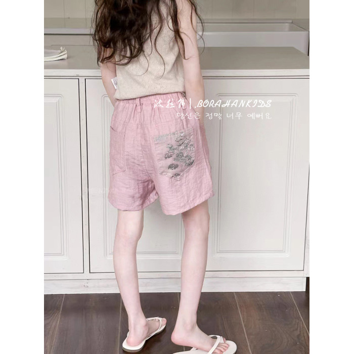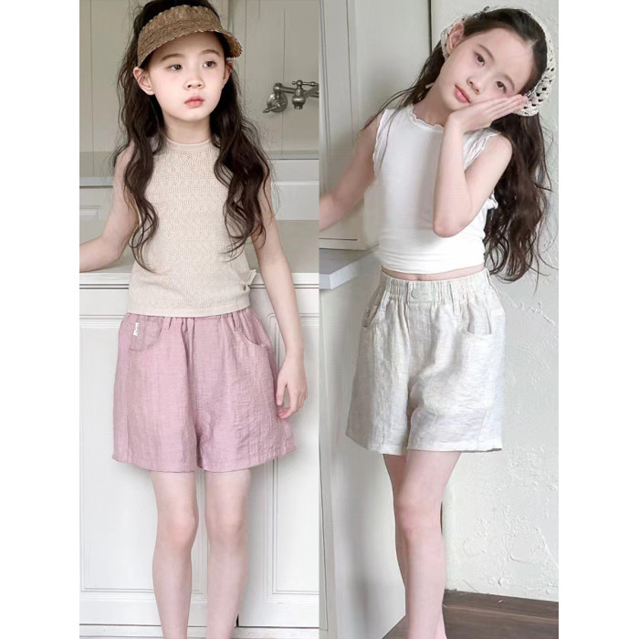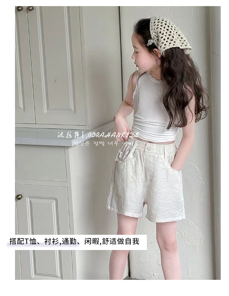 波拉韓女童休閒棉麻短褲超薄2025夏季兒童速乾涼涼褲中大童熱褲