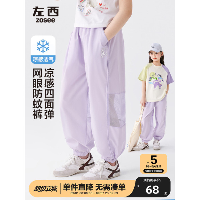 左西女童防蚊褲兒童褲子夏季薄款涼感透氣2025新款女孩夏裝休閒褲