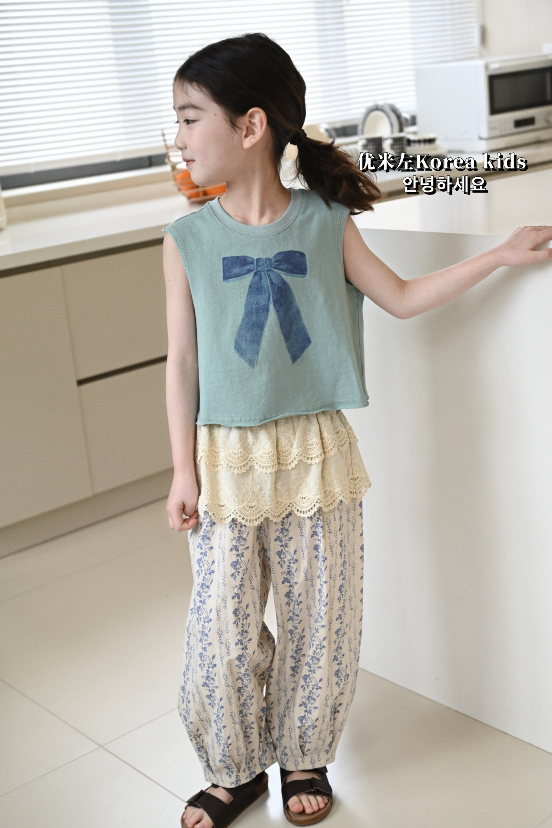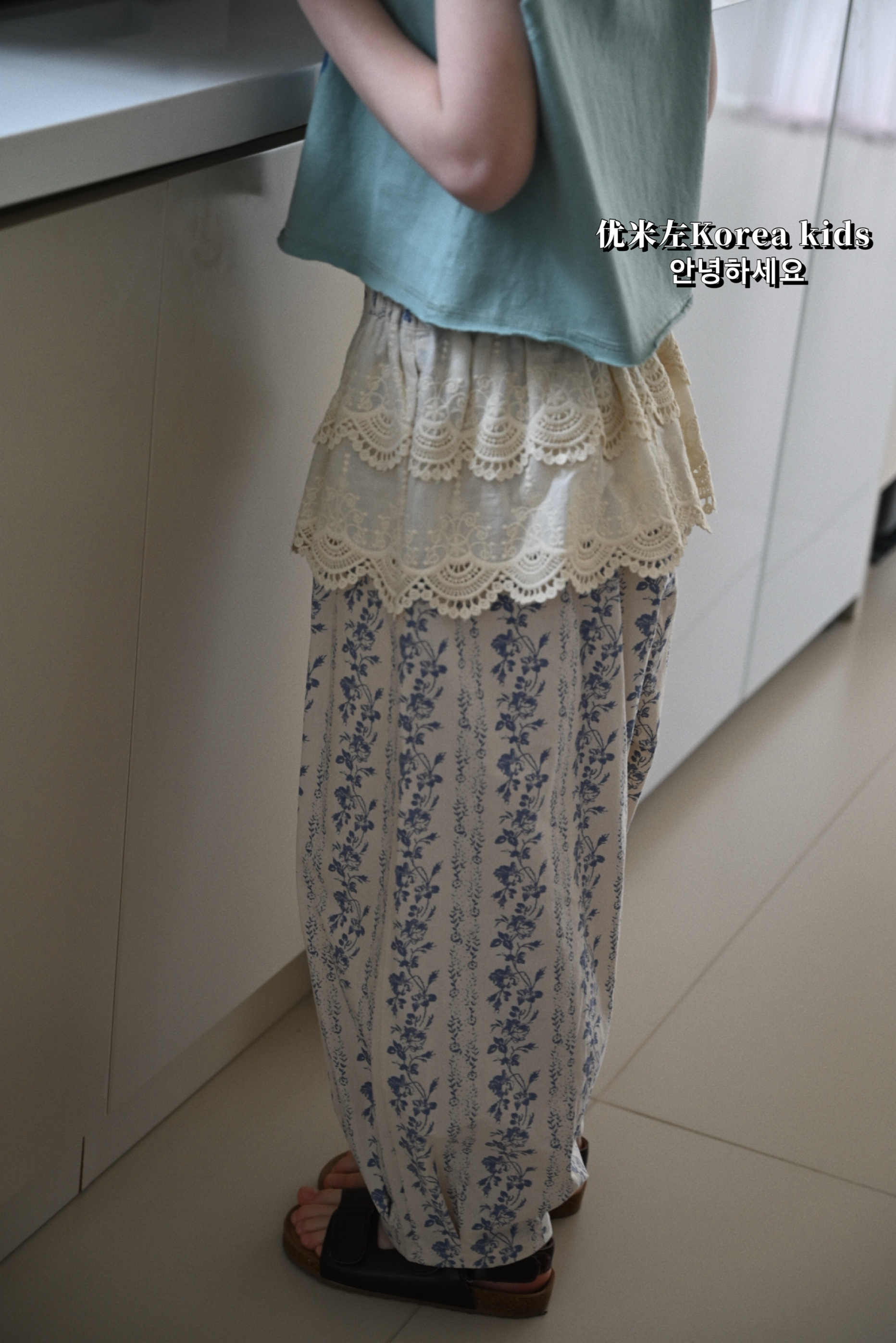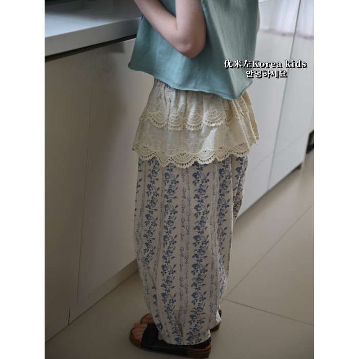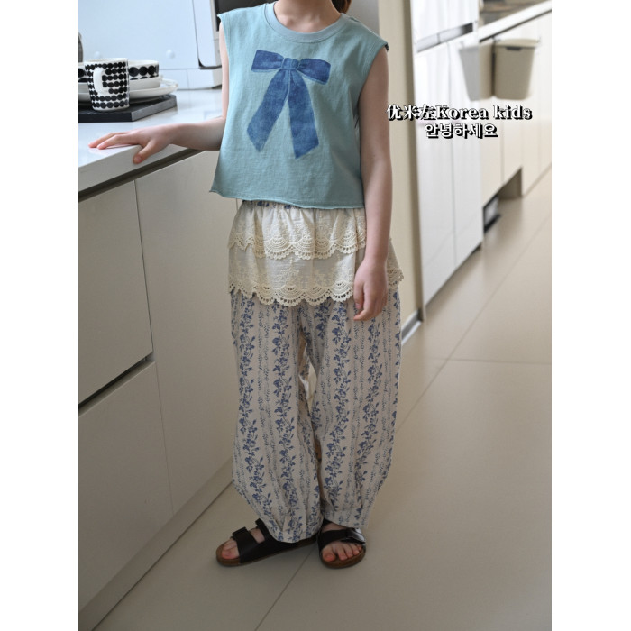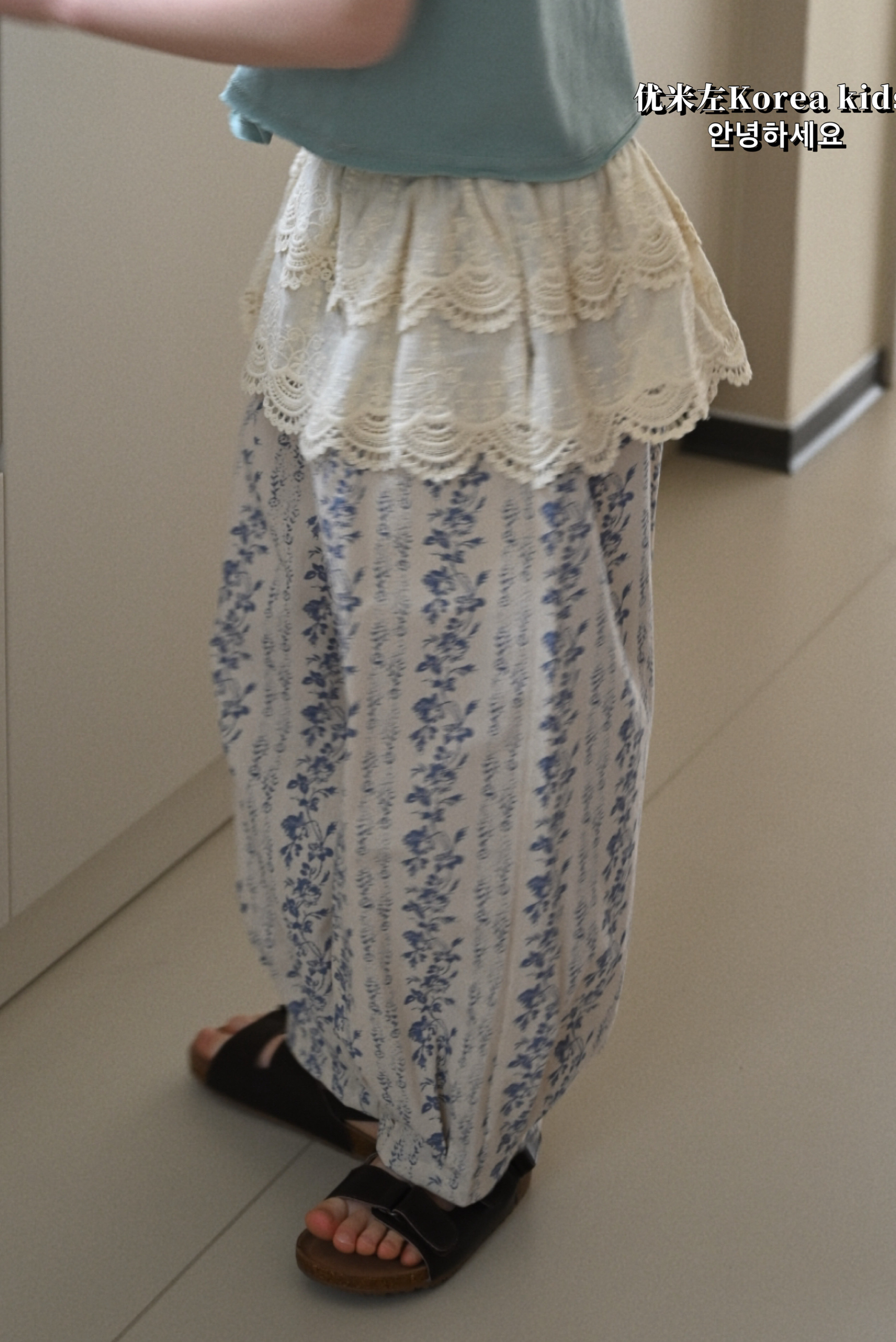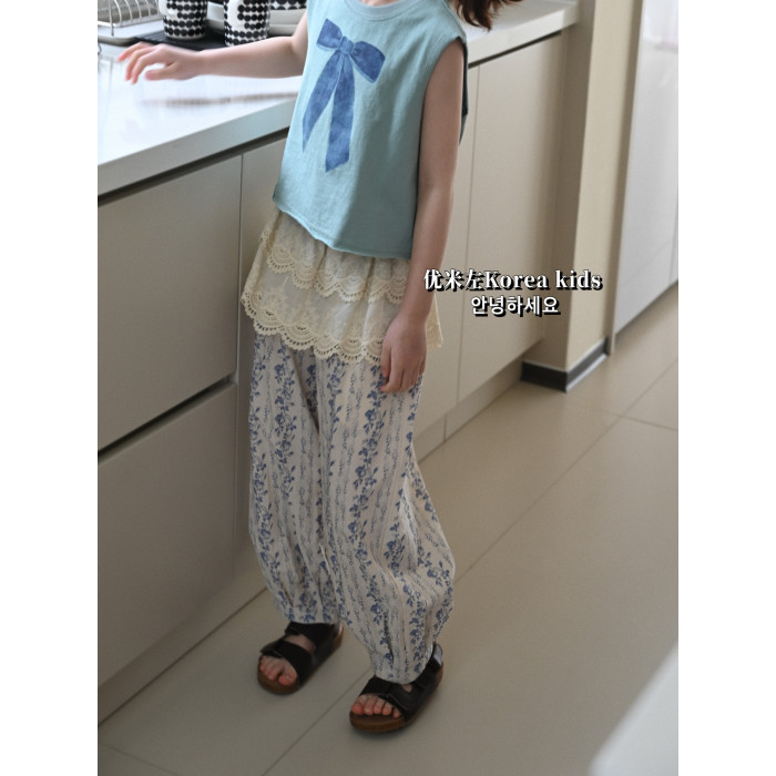 女童蕾絲褲子2025新款洋氣兒童夏季薄款蘿蔔褲女孩休閒屁簾小花褲