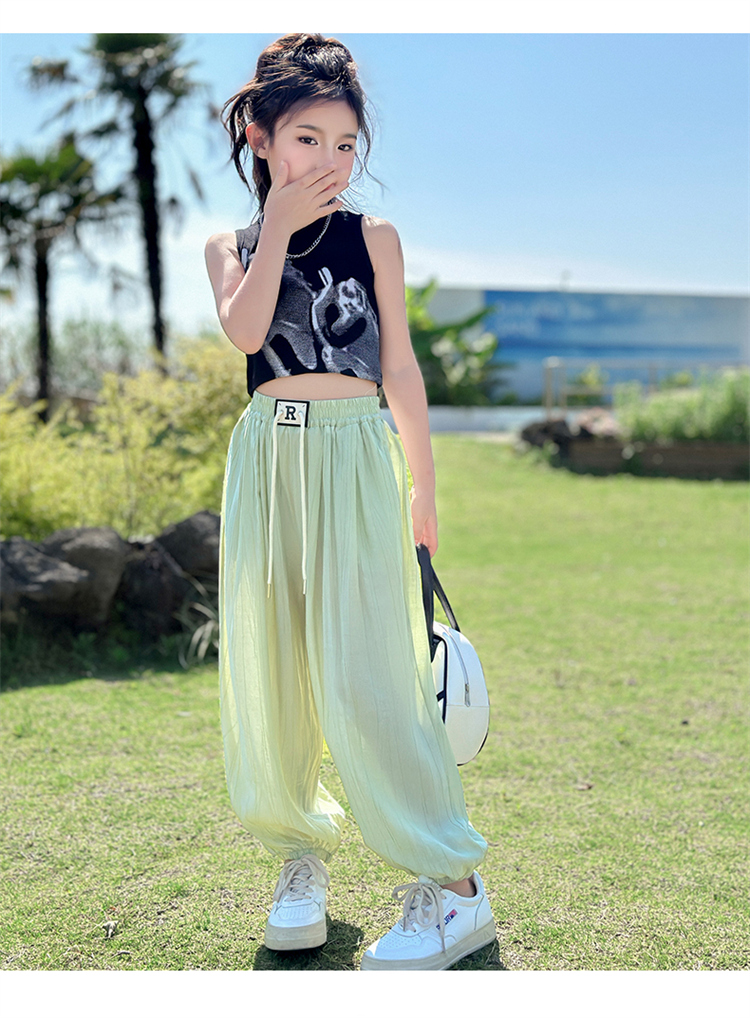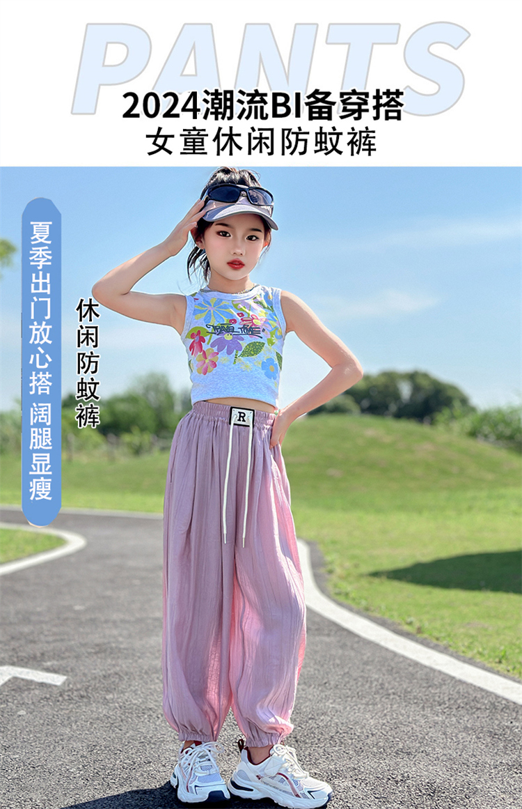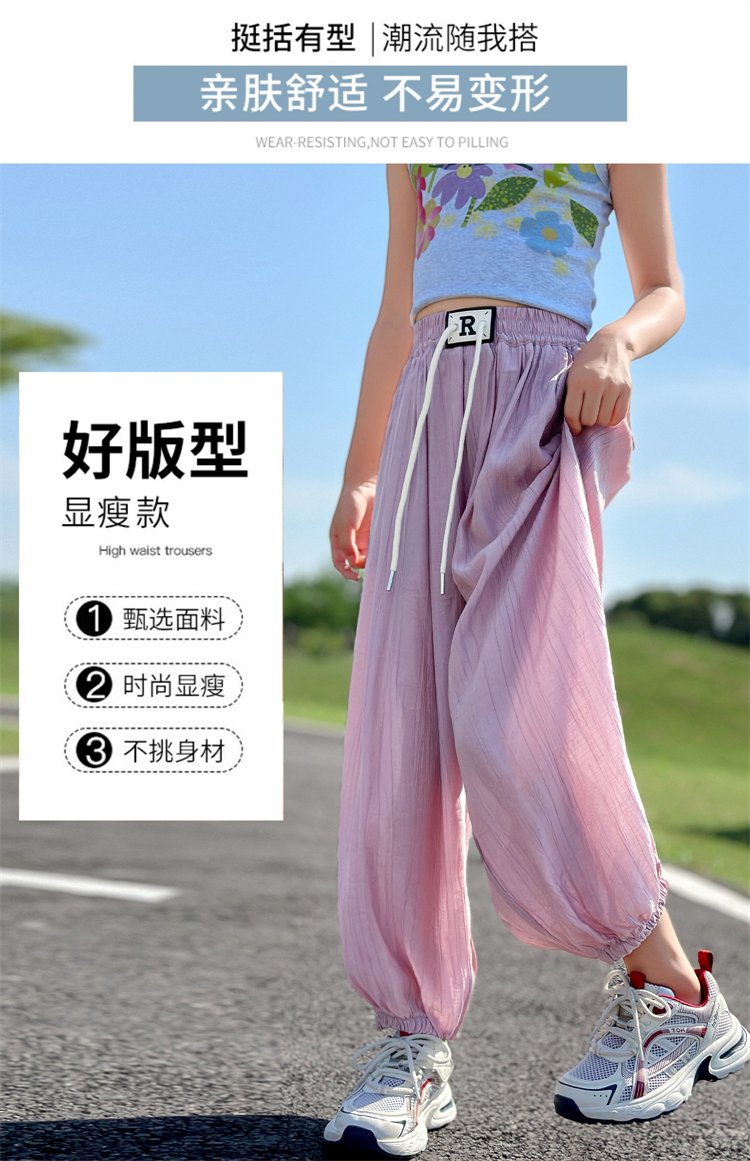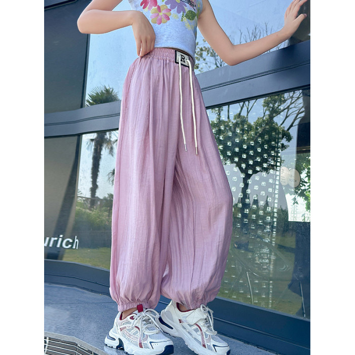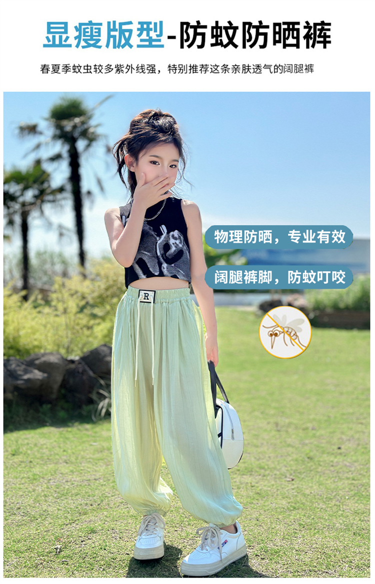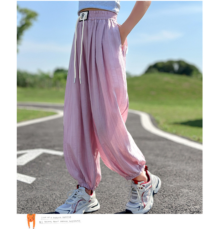 女童冰絲防蚊褲2025新款兒童休閒寬松燈籠褲夏季輕薄束腳速乾褲子