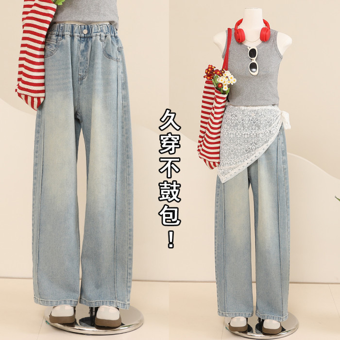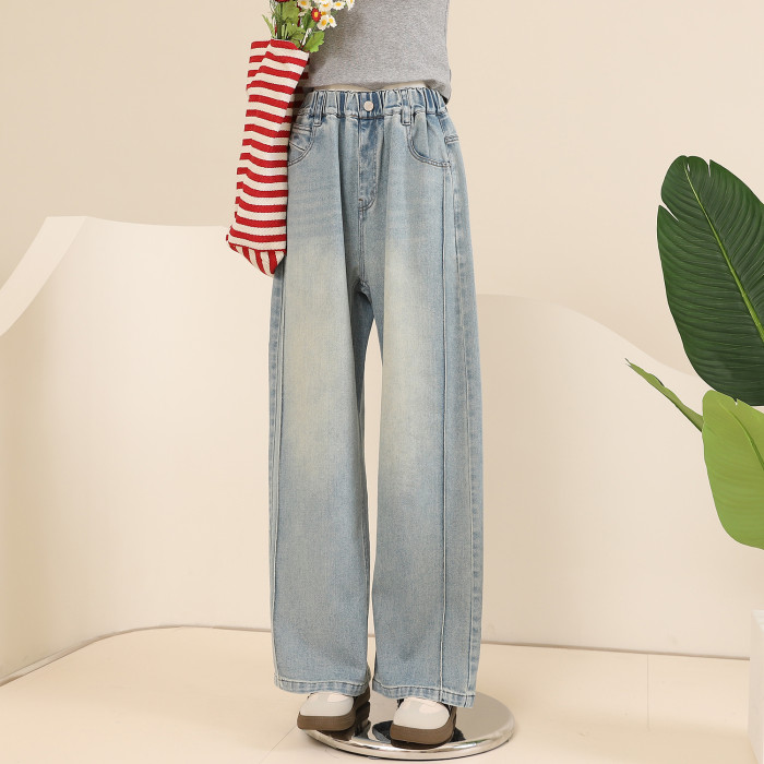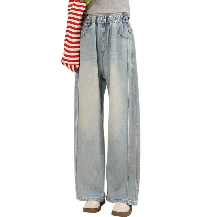 【CC家居控】女童春裝褲子女大童春秋款彎刀牛仔褲潮C4600