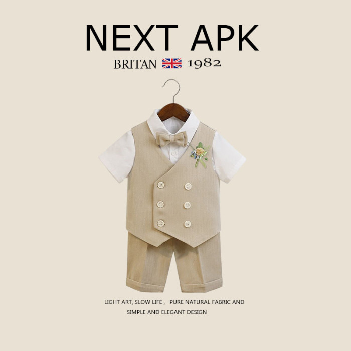 英國NEXT APK兒童西服套裝短袖襯衫馬甲短褲男童活動生日演出服