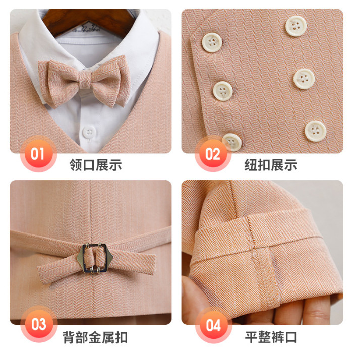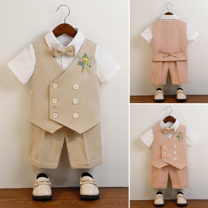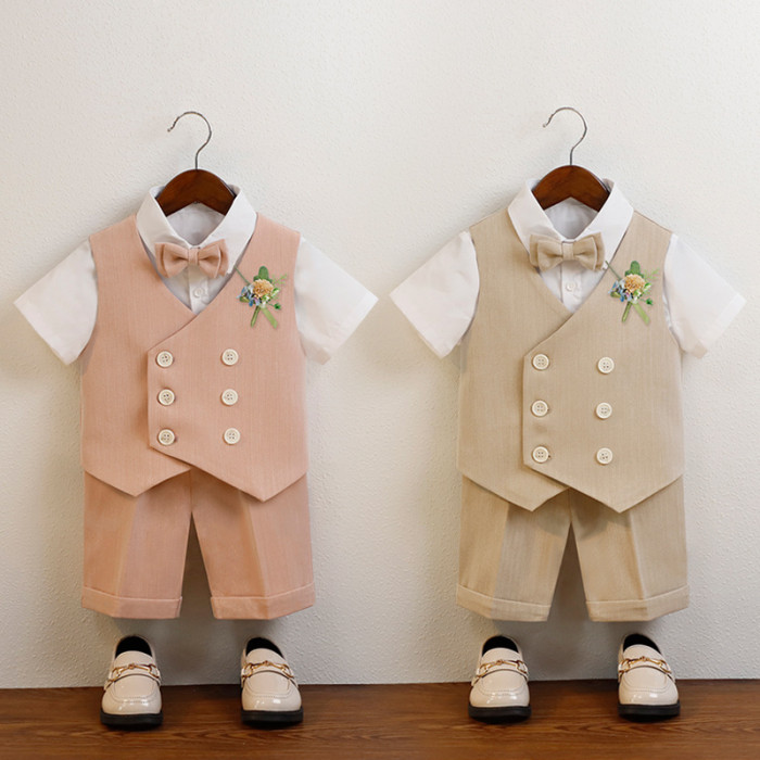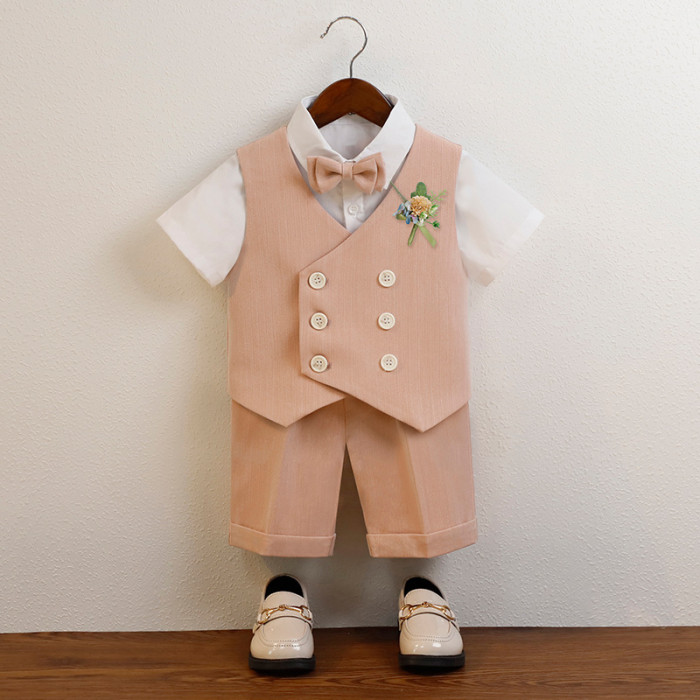 卡其5件套(馬甲+短褲+襯衫+領結+胸花)