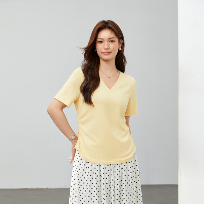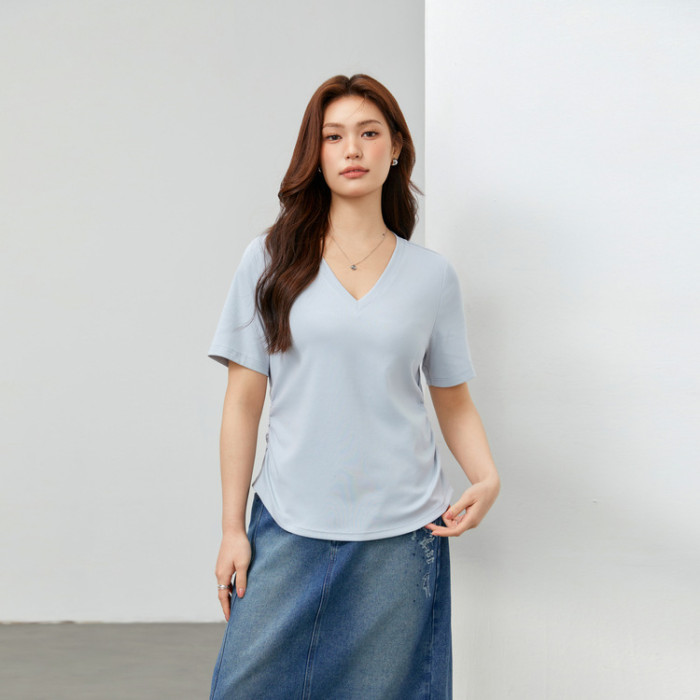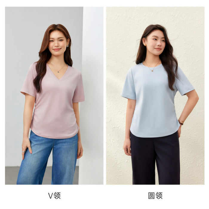 纖莉秀2024春新款大碼女裝胖mm簡約風基礎純色百搭顯瘦V領針織衫