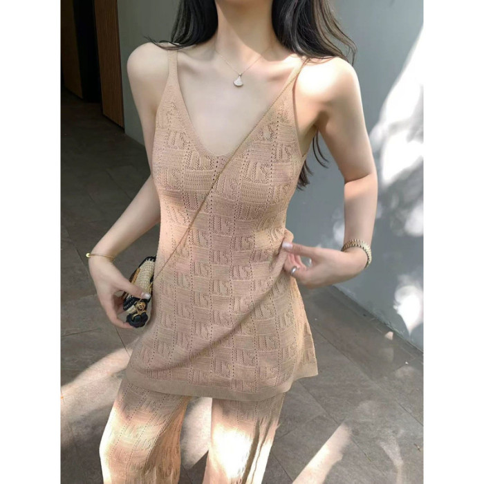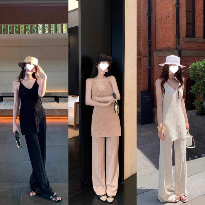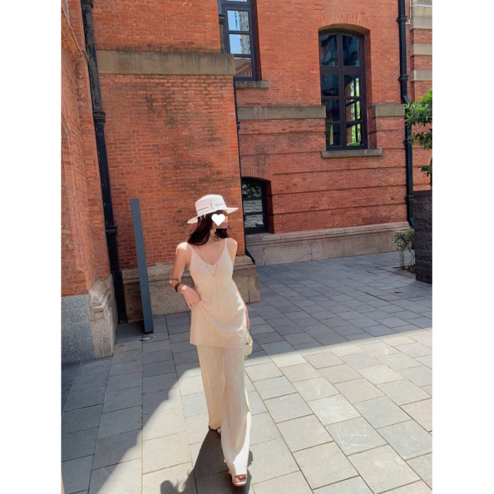 氣質新款套裝女夏季設計感背心吊帶上衣休閒顯瘦長