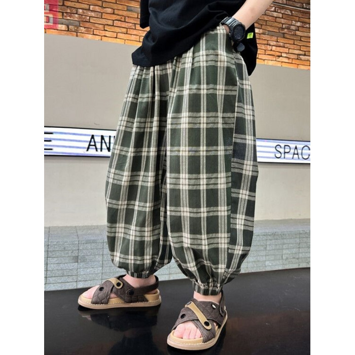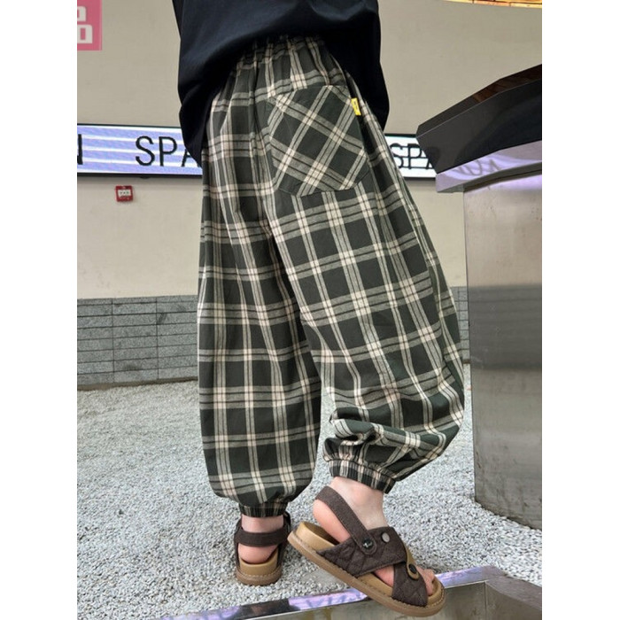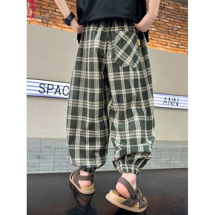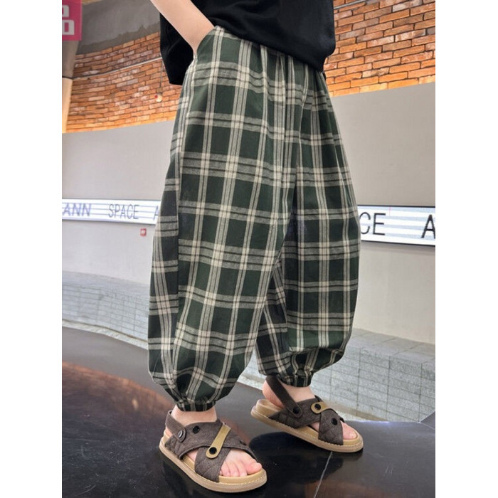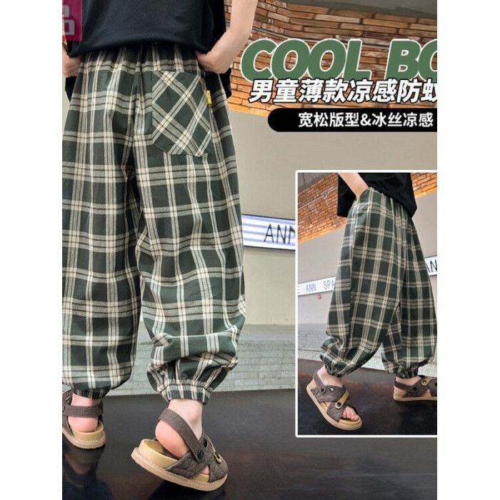 童裝兒童棉布防蚊褲夏裝軟牛仔褲輕薄休閒束腳褲男童格子褲子a610
