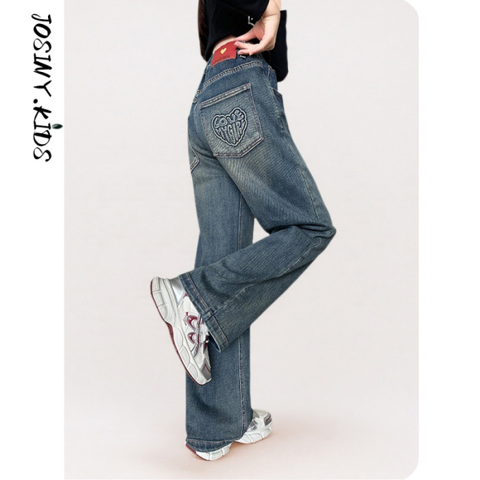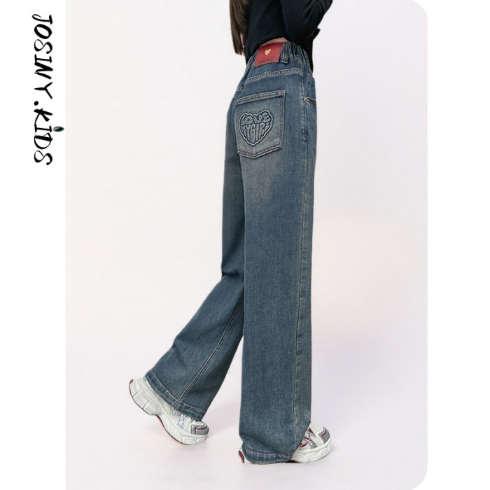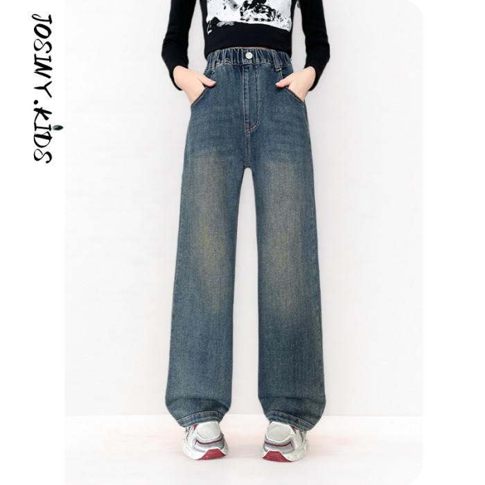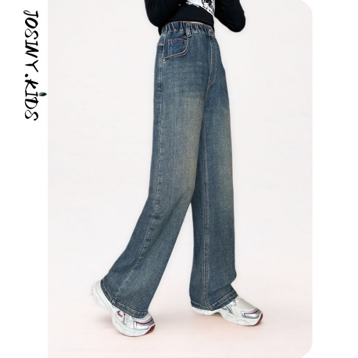 卓詩尼女童春秋季直筒牛仔褲時髦褲子2025新款洋氣中大童休閒長褲