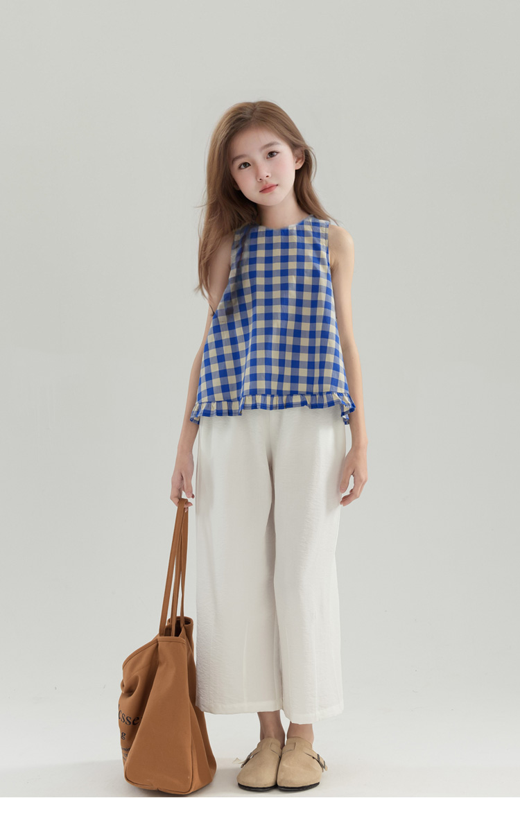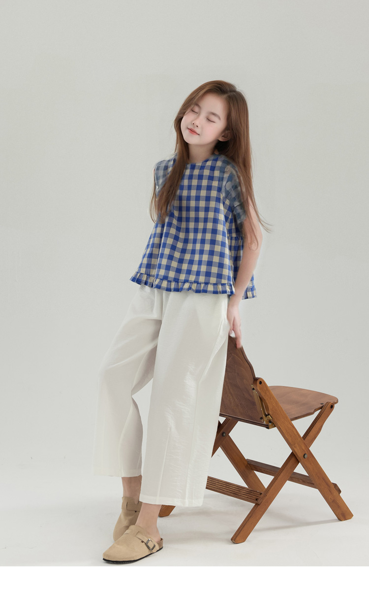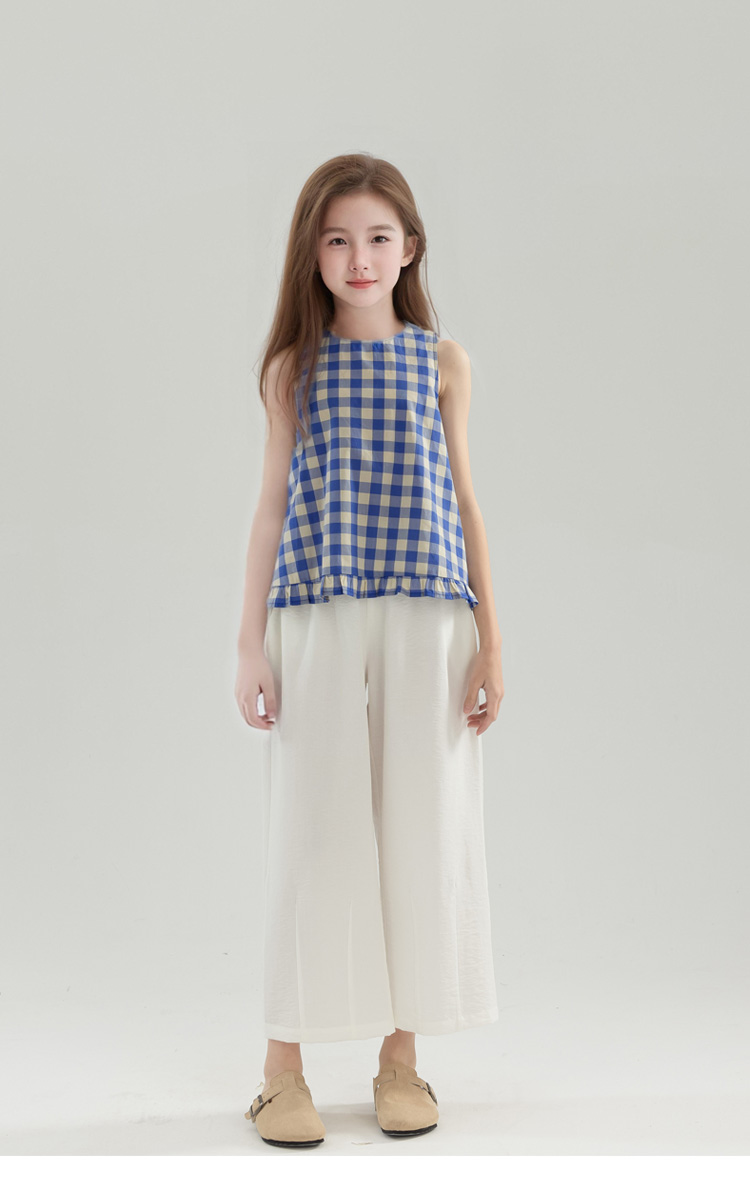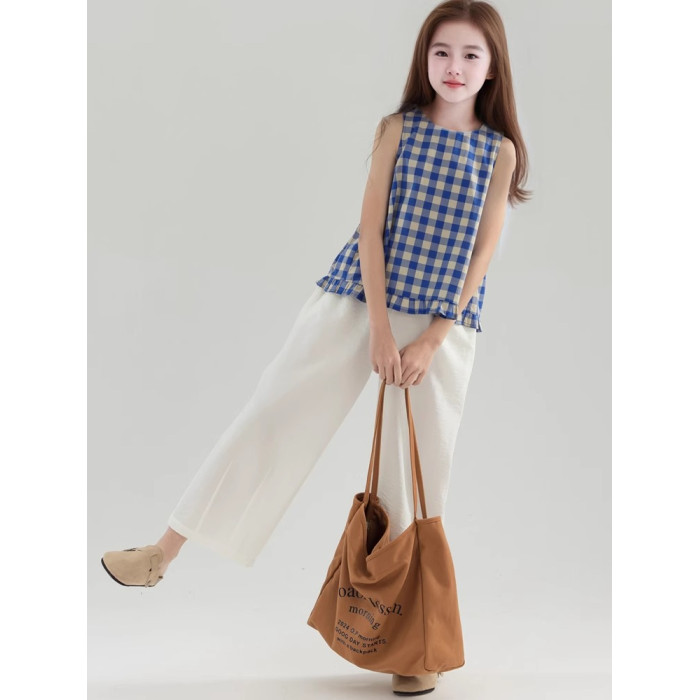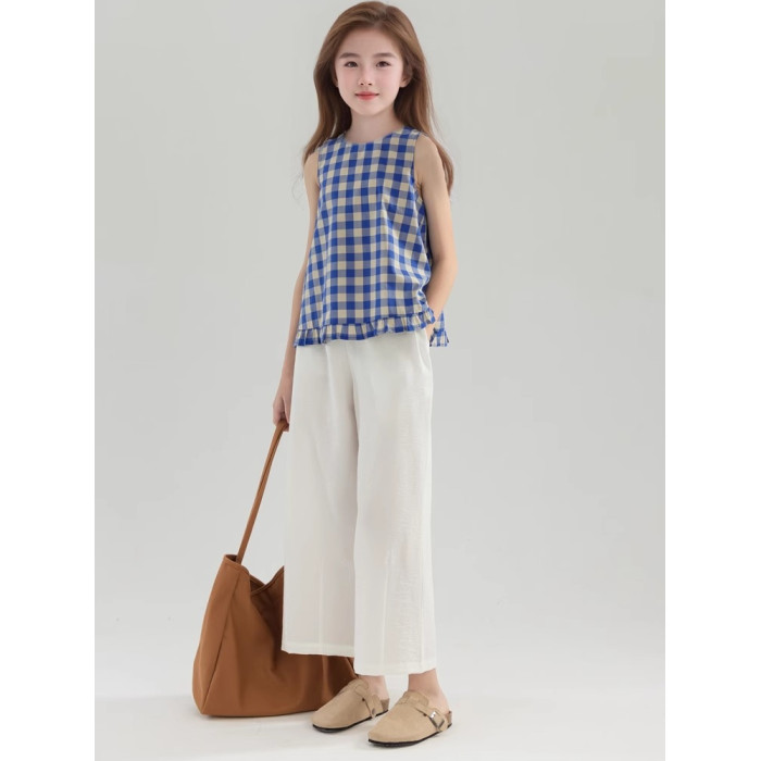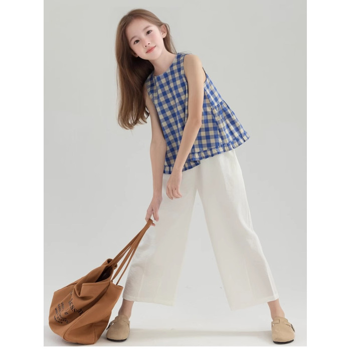 夏季女童純棉白色休閒寬松濶腿褲 童裝新品夏款九分褲 中大兒童褲