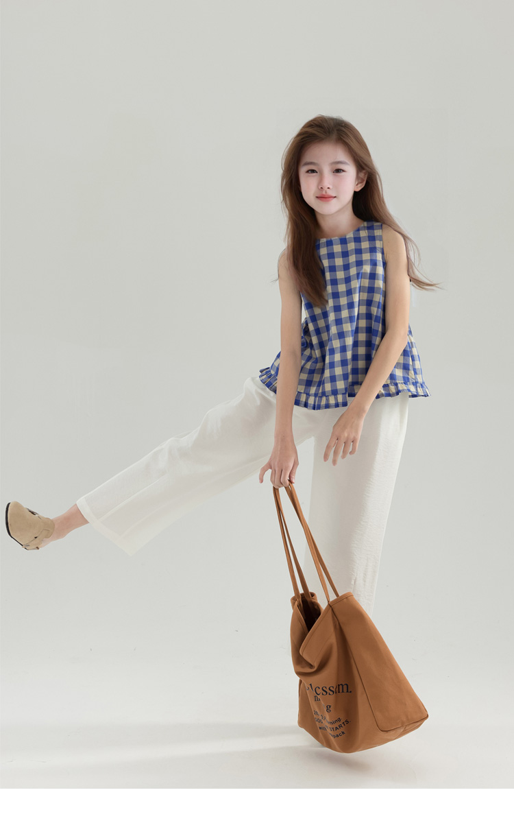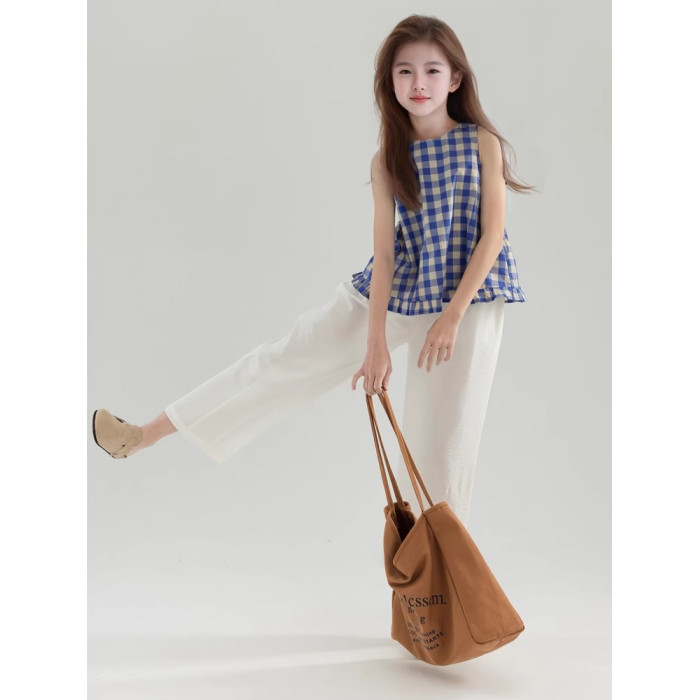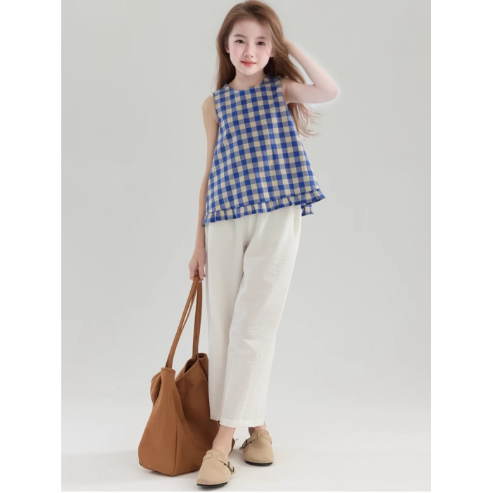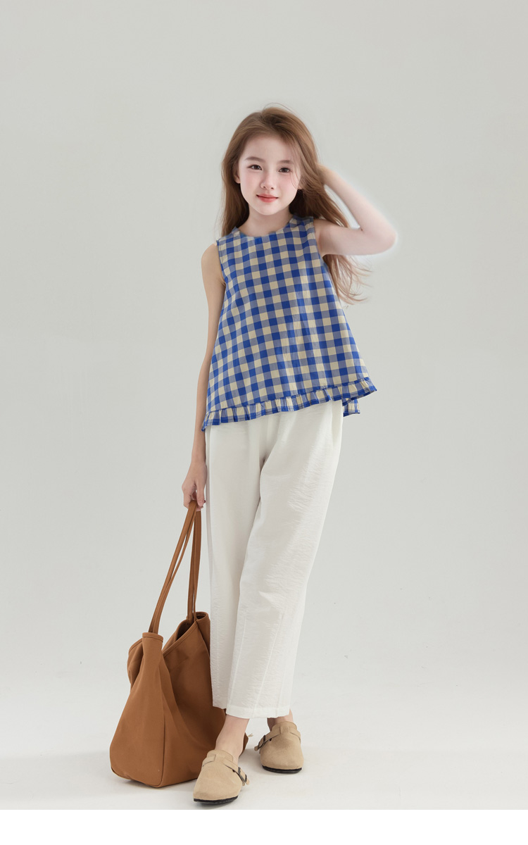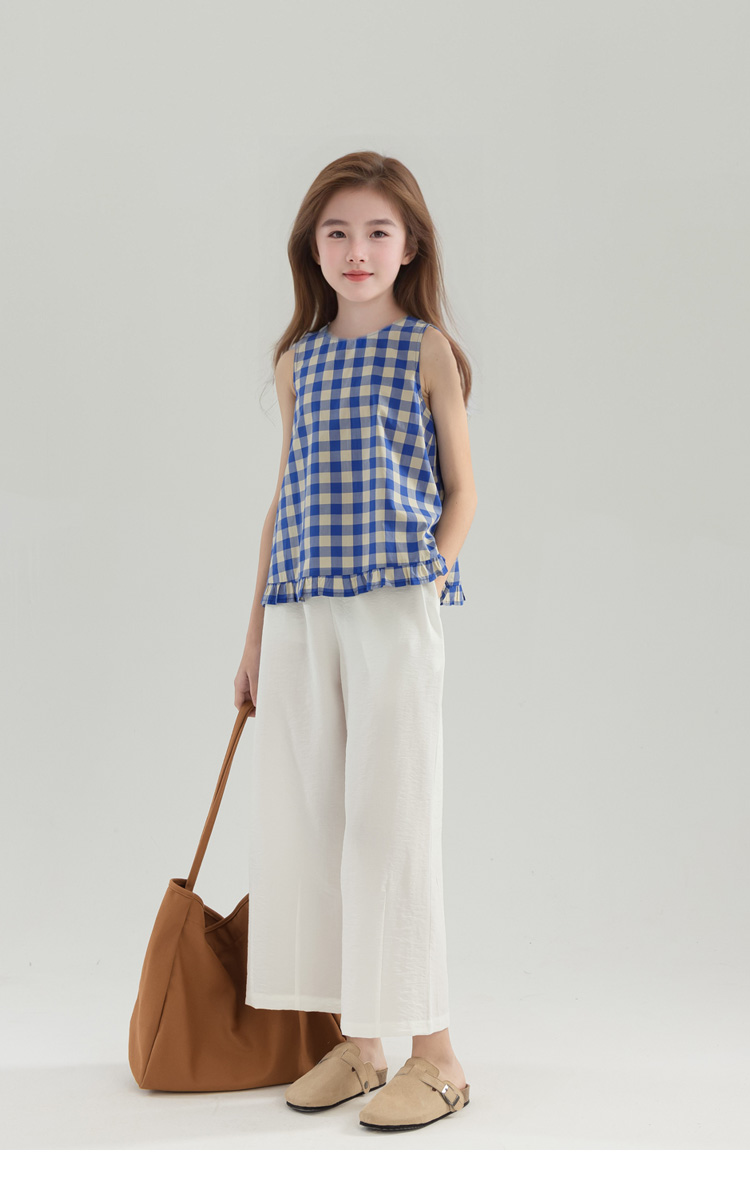 夏季女童純棉白色休閒寬松濶腿褲 童裝新品夏款九分褲 中大兒童褲
