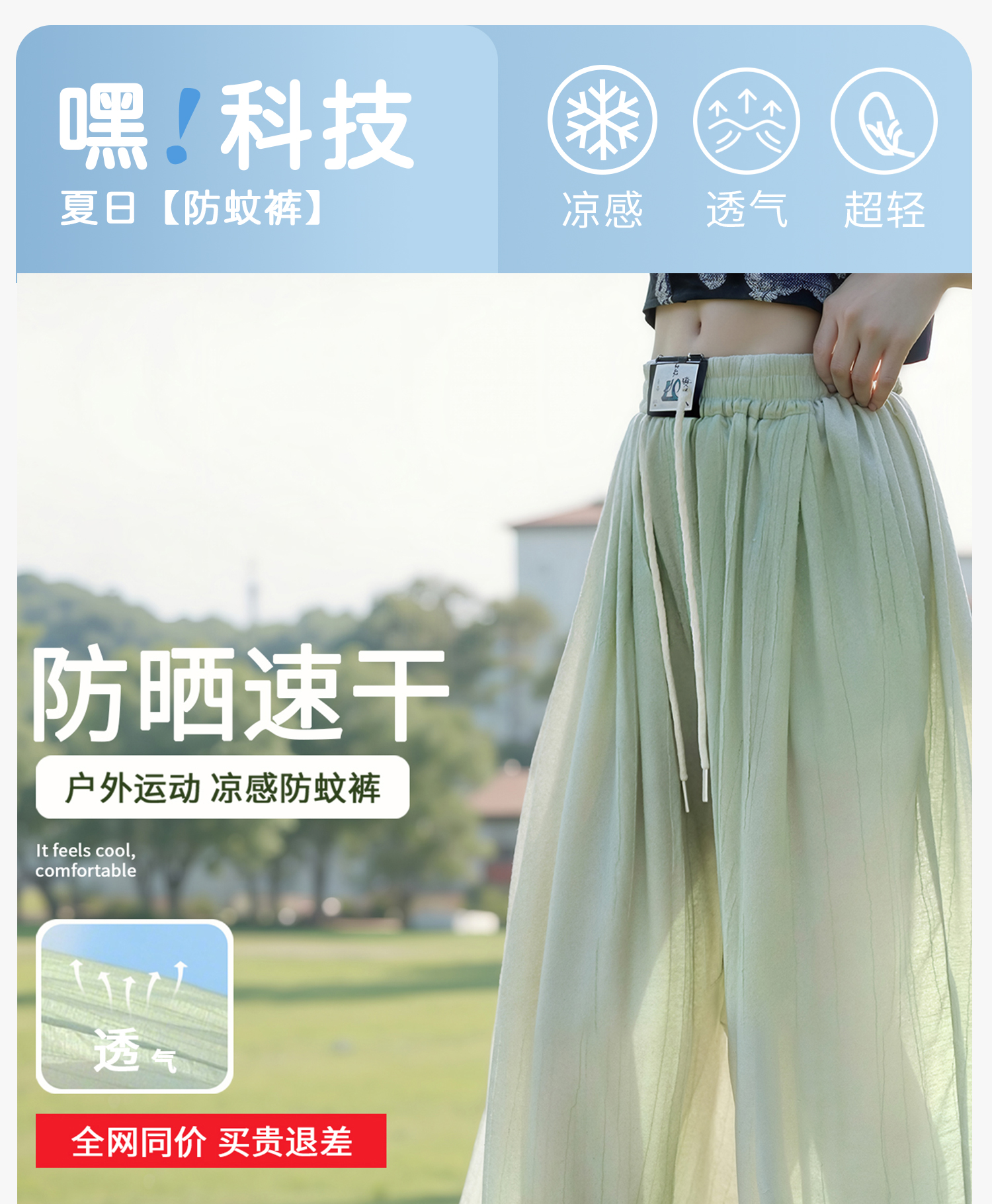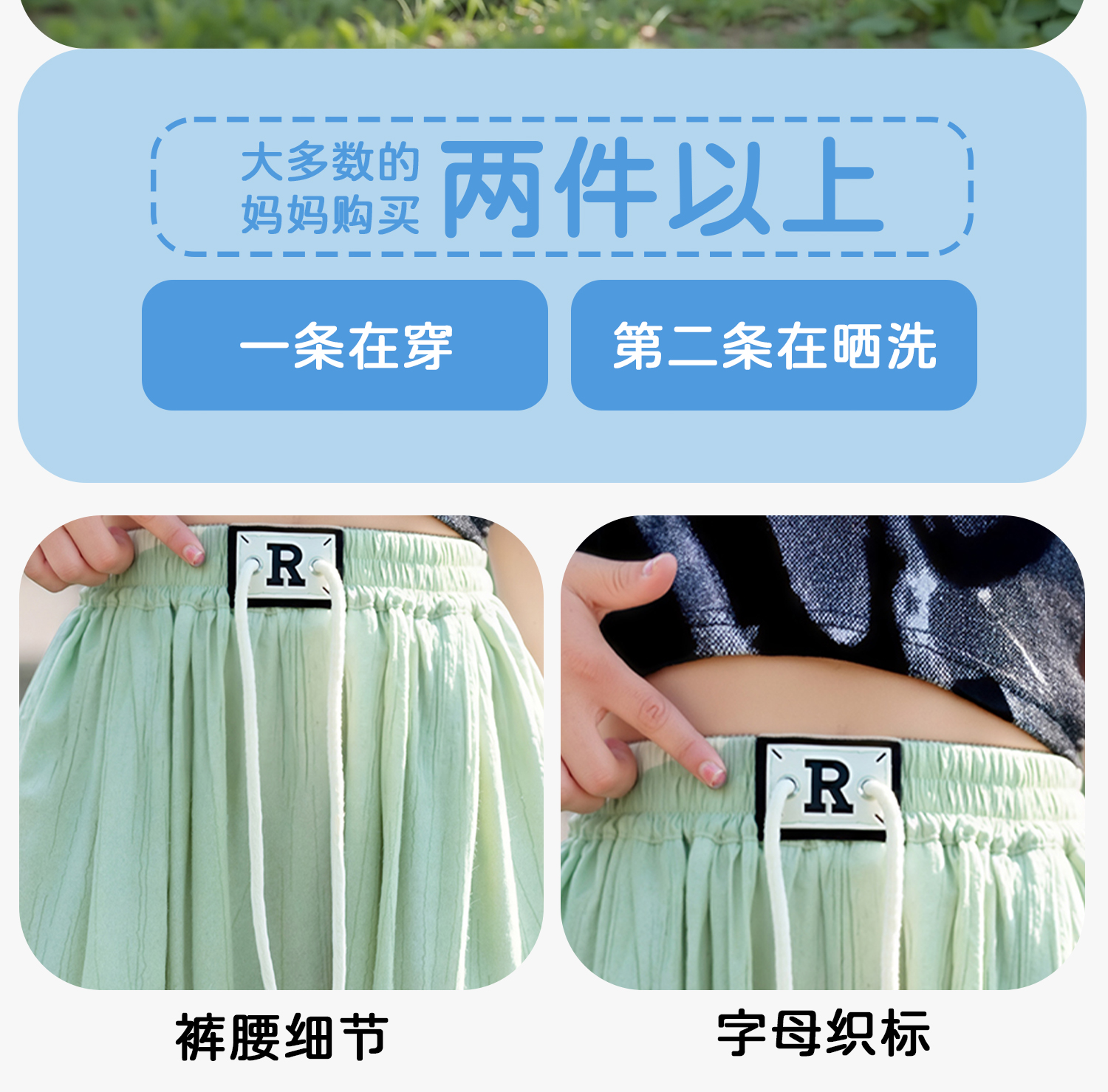 女童褲子夏季薄款2025新款冰絲防蚊褲中大童寬松女孩速乾休閒長褲