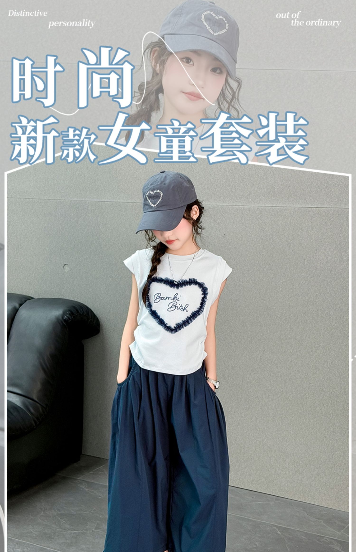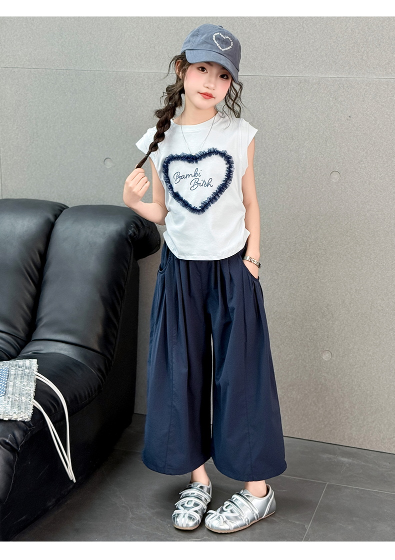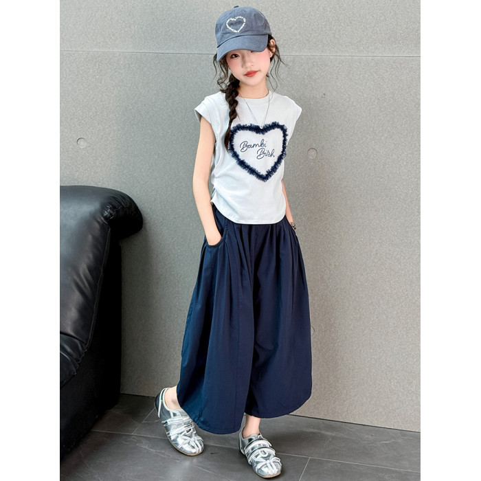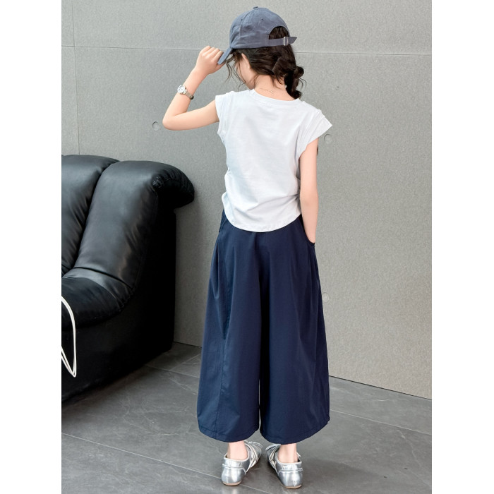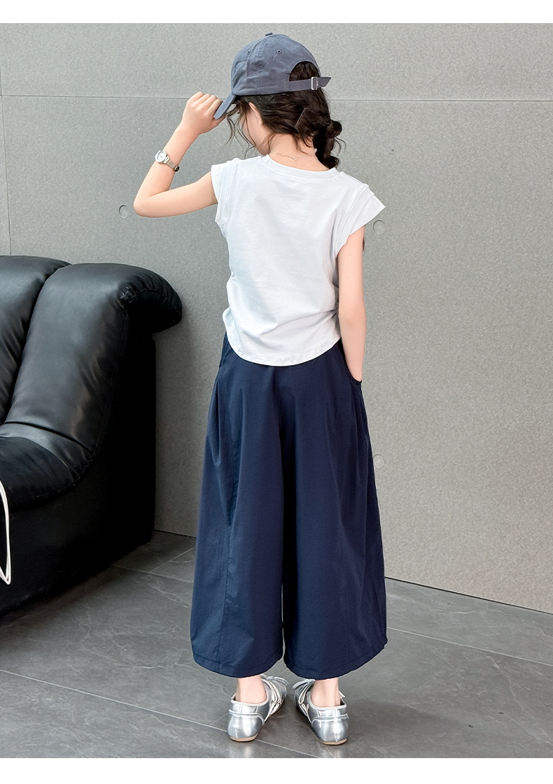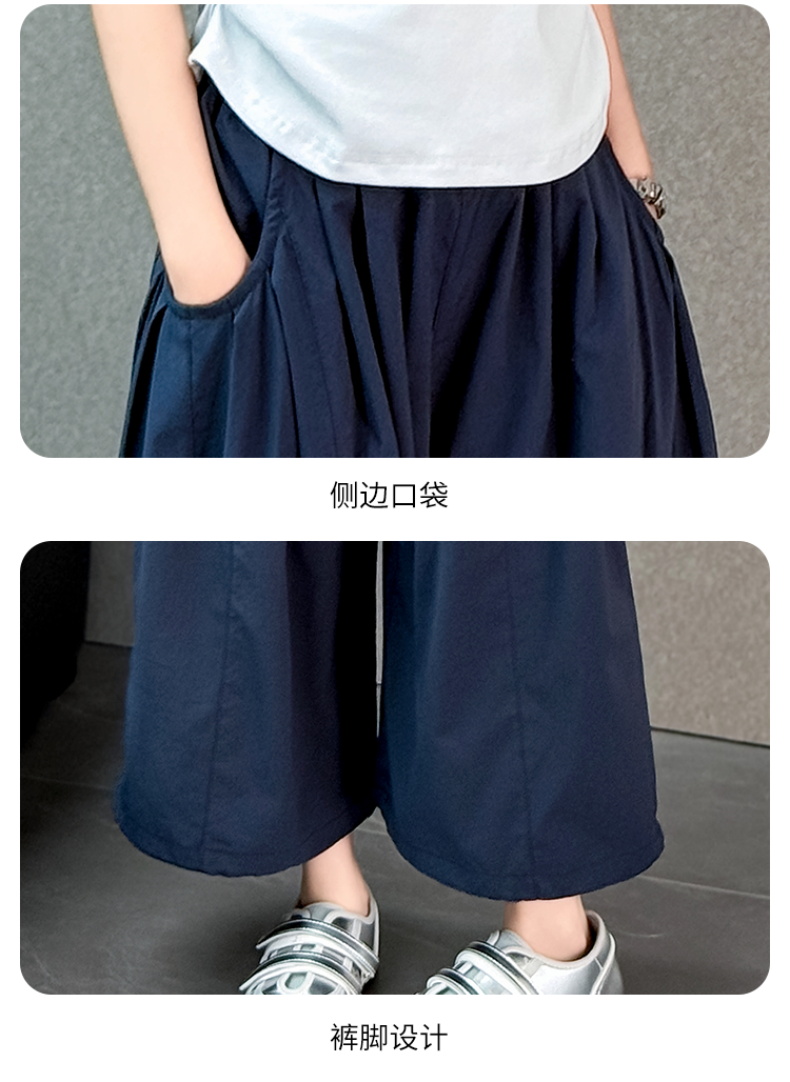女童薄款褲子夏季新款時髦寬松濶腿褲女孩休閒百搭九分褲洋氣裙褲