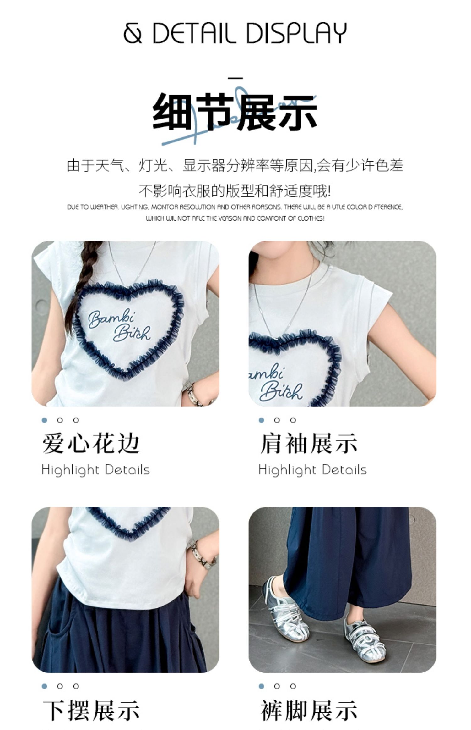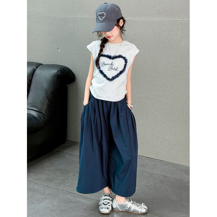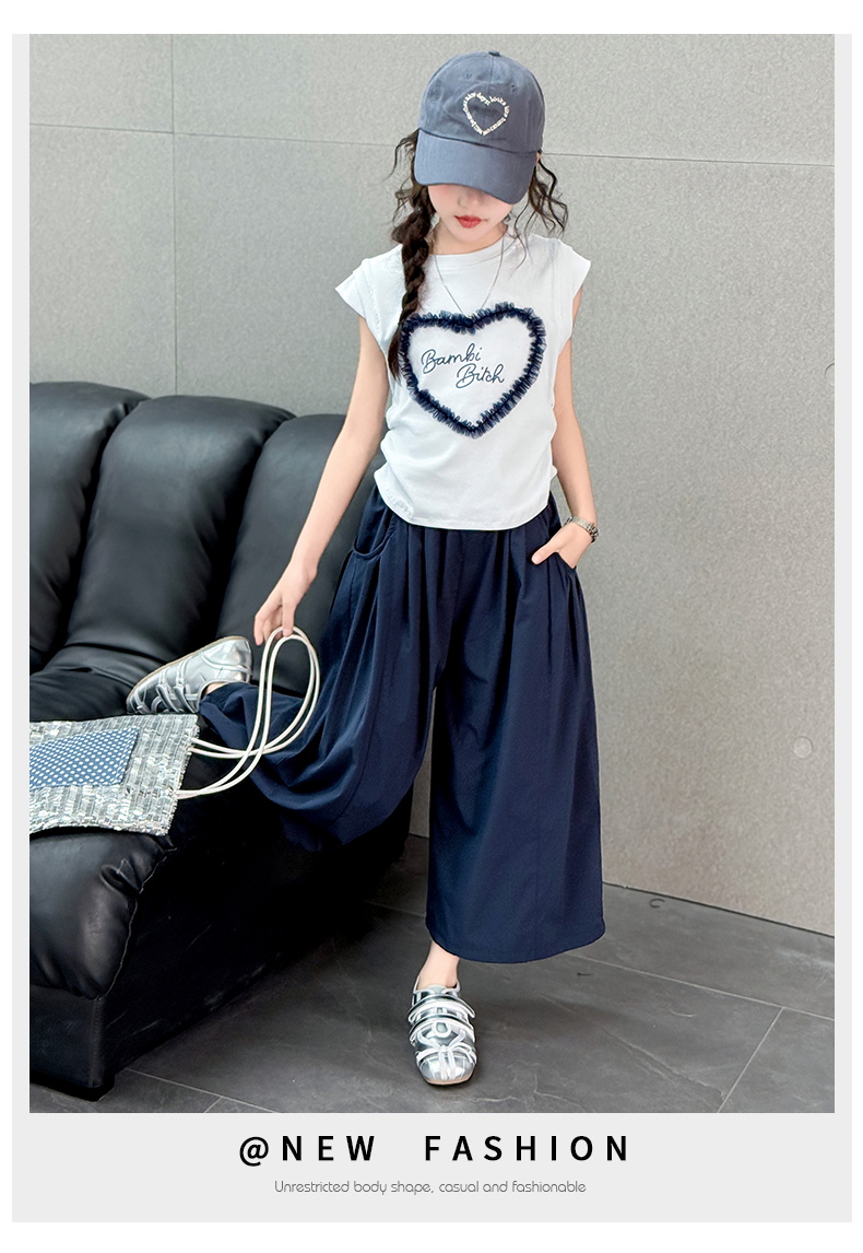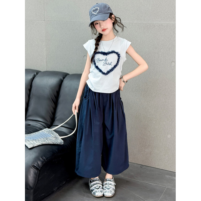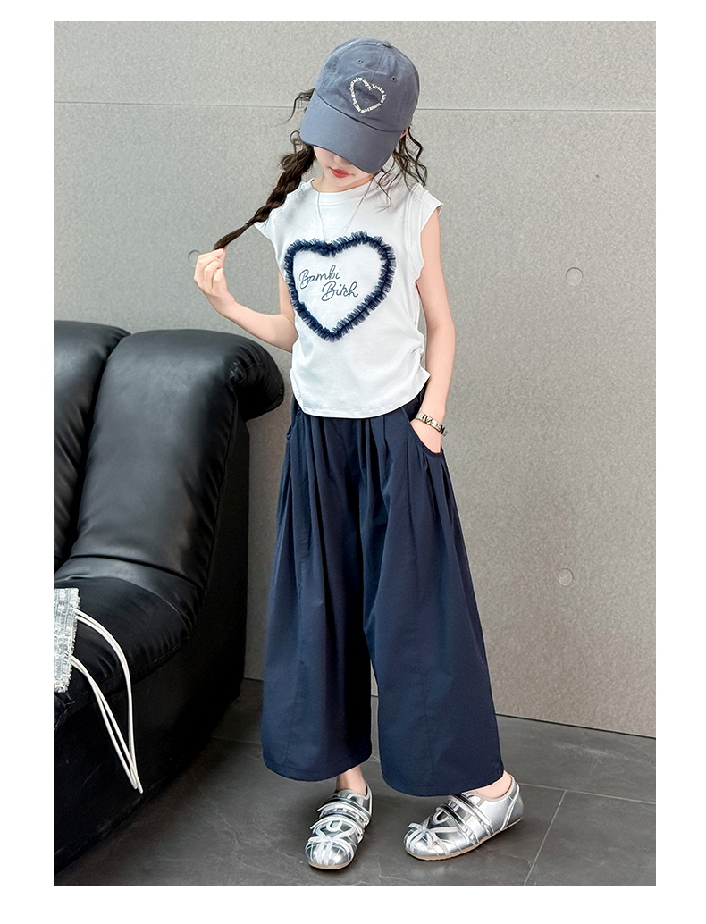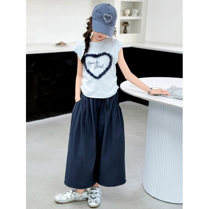 女童薄款褲子夏季新款時髦寬松濶腿褲女孩休閒百搭九分褲洋氣裙褲