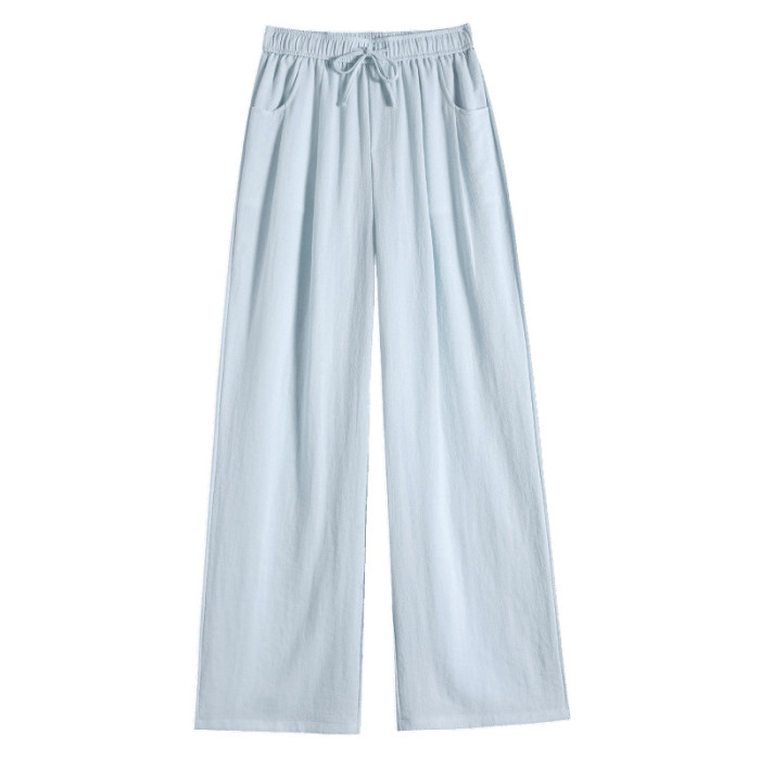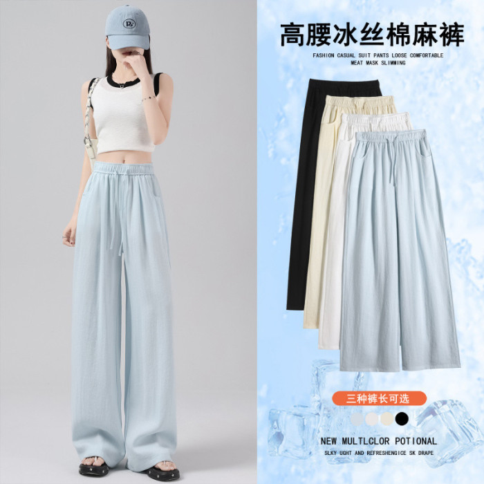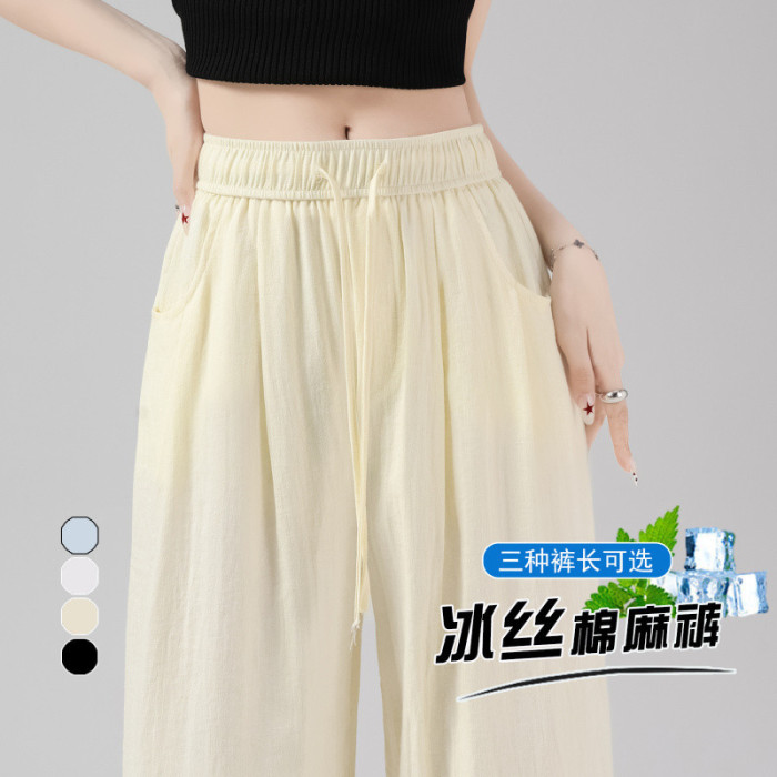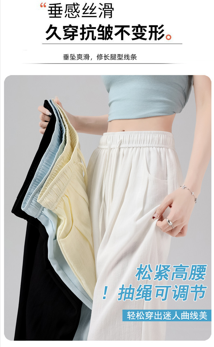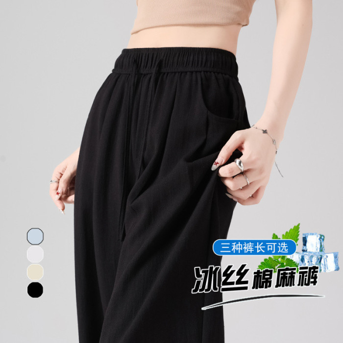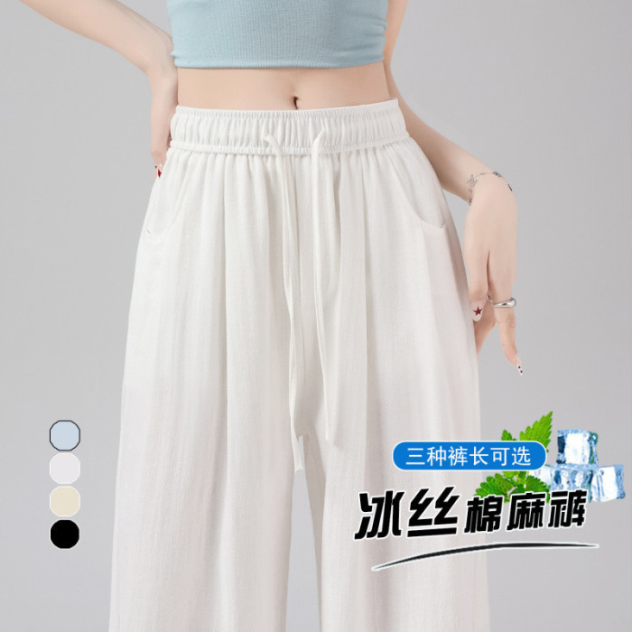 2025夏季新款亞麻冰絲濶腿褲高腰棉麻山本褲薄款休閒褲女