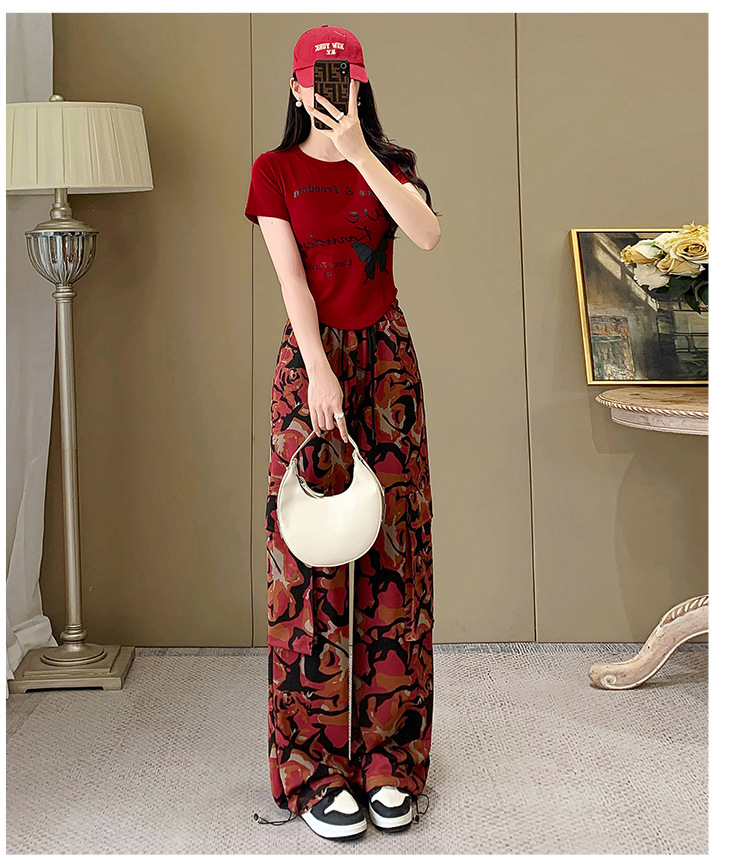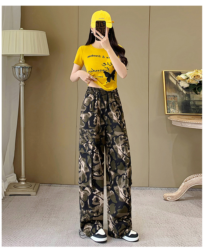 迷彩運動套裝女夏季2025新款街舞嘻哈跳舞弧形T恤時尚兩件套顯瘦