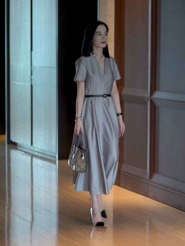 預售2864大碼女裝高級感裙子法式胖mm輕奢正式場合收腰減齡連衣裙