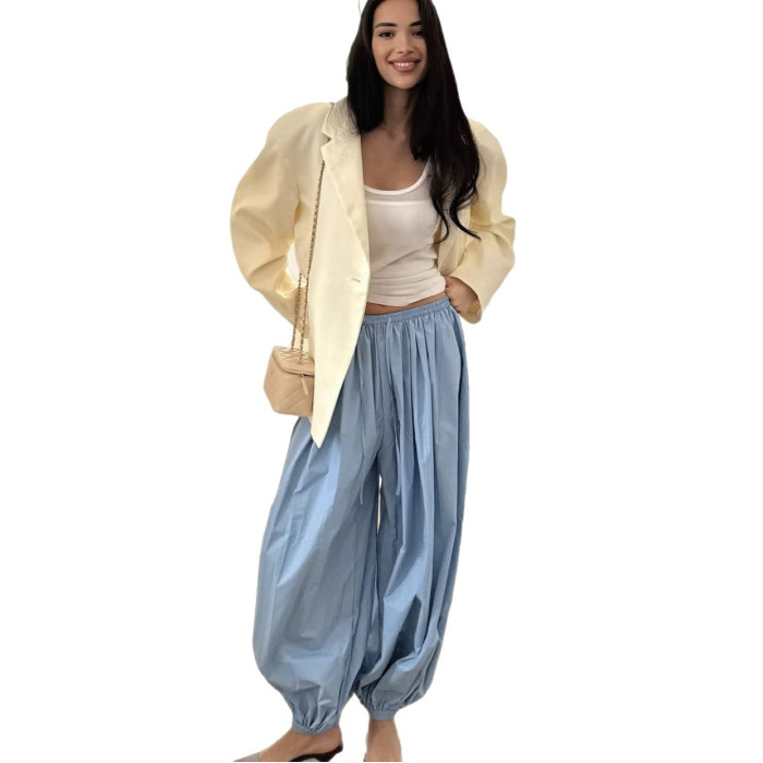 2025歐美夏季新款寬松束腳褲時尚個性休閒燈籠褲