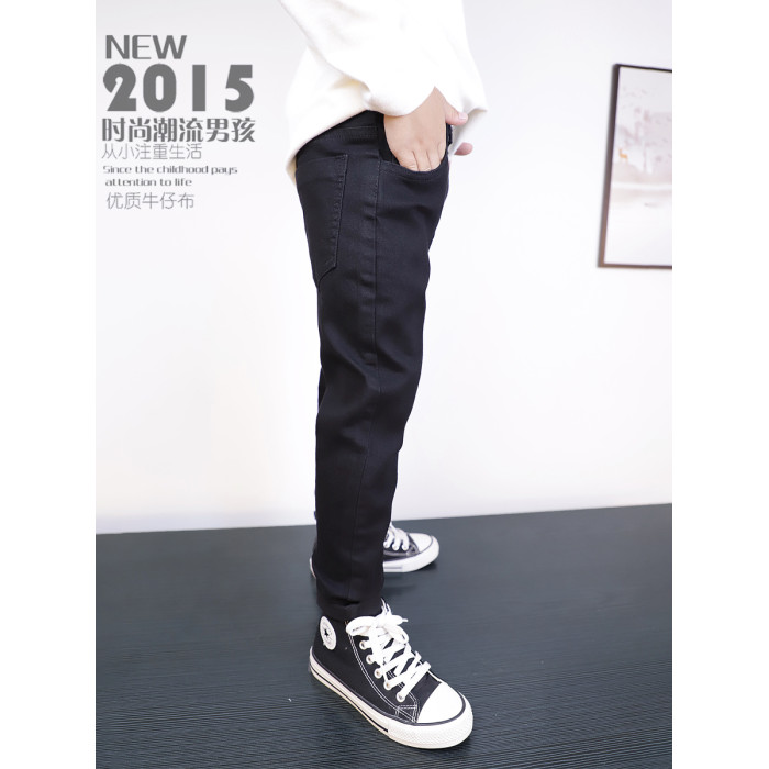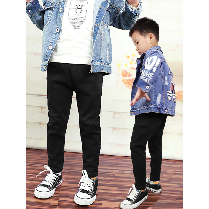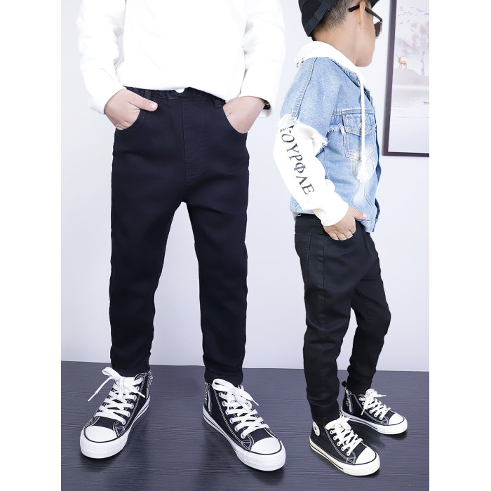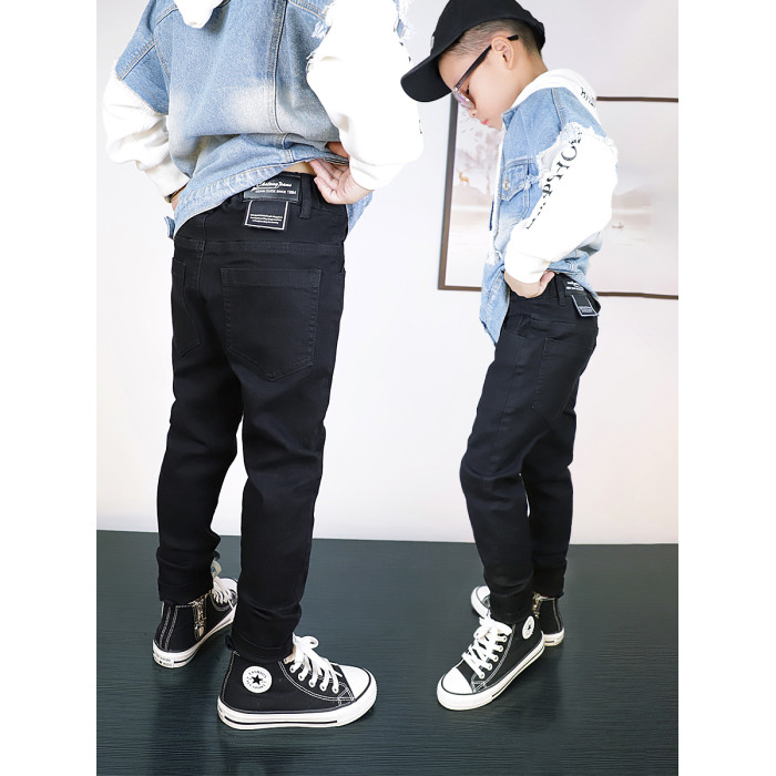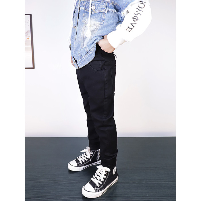童裝2024春秋款男童牛仔褲兒童中大童修身小腳黑色一體加絨鉛筆褲