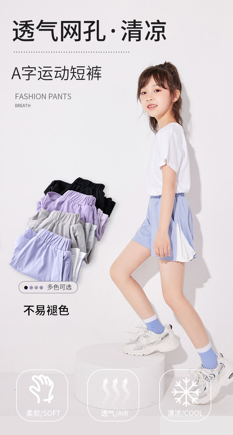女童運動短褲2025新款外穿兒童冰絲褲子速乾夏季薄款寬松大童夏裝
