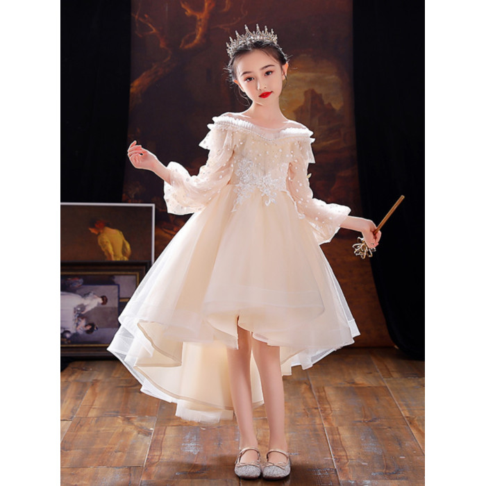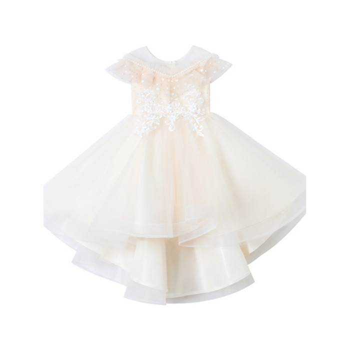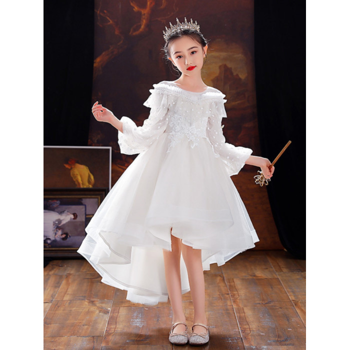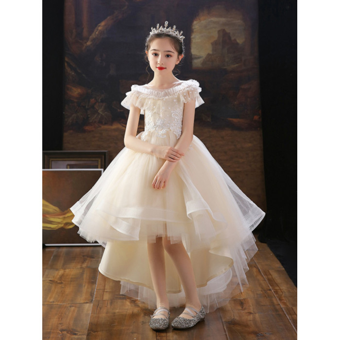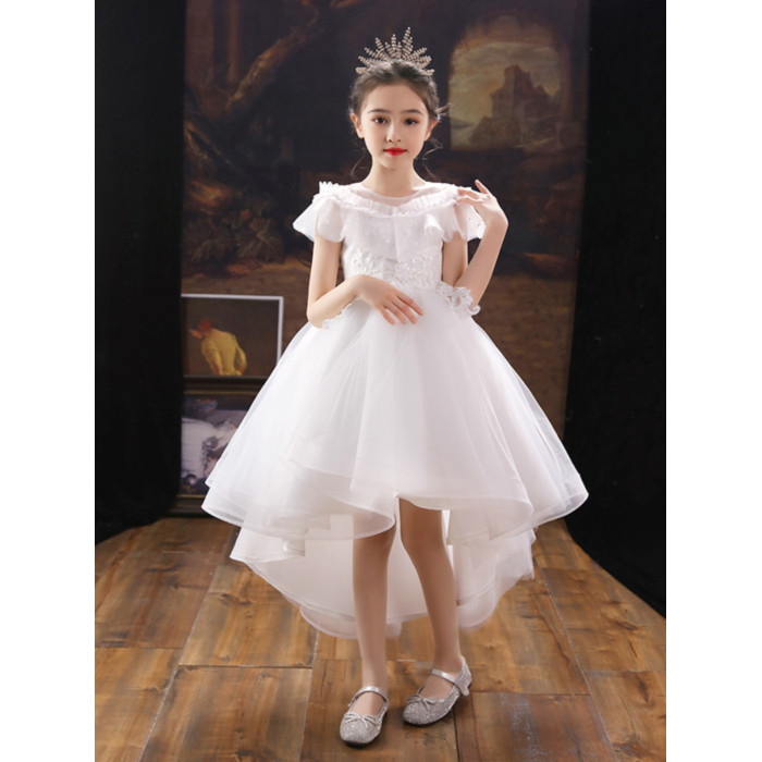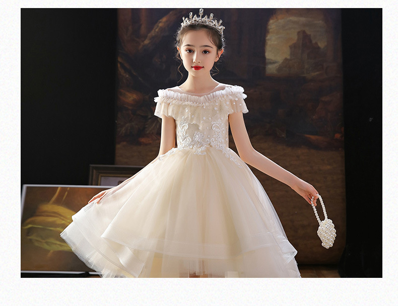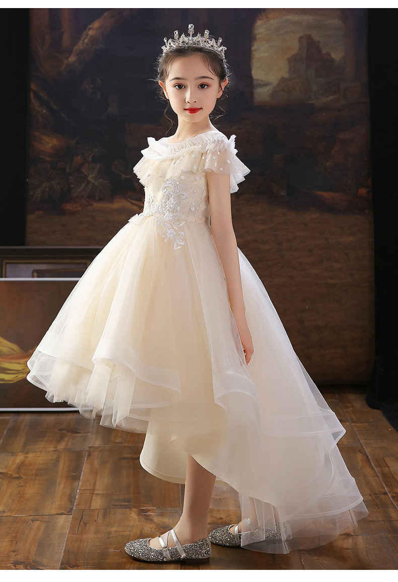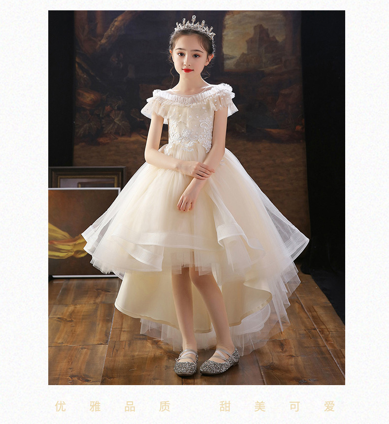 女童公主裙霸氣前短後長走秀演出服兒童連衣裙洋氣夏季蓬蓬紗禮服