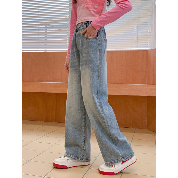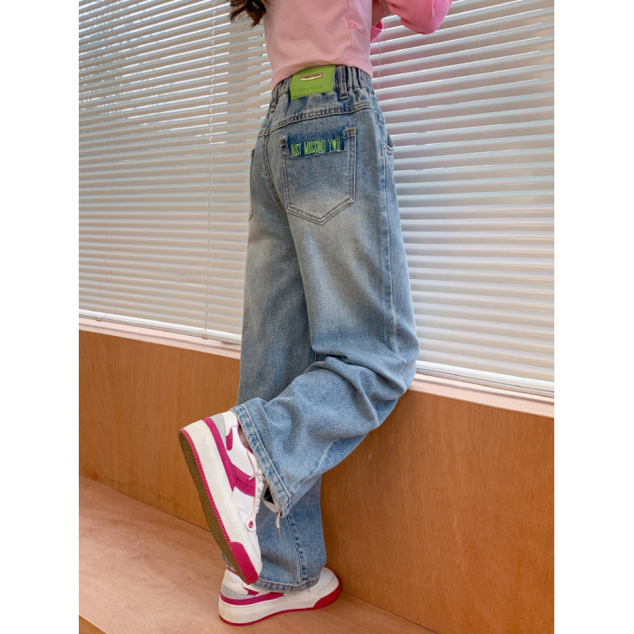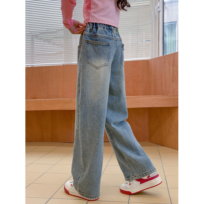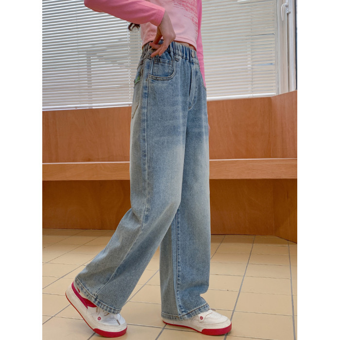 兒童牛仔褲春秋新款裝季女童褲子中大童直筒濶腿女孩休閒薄防蚊夏