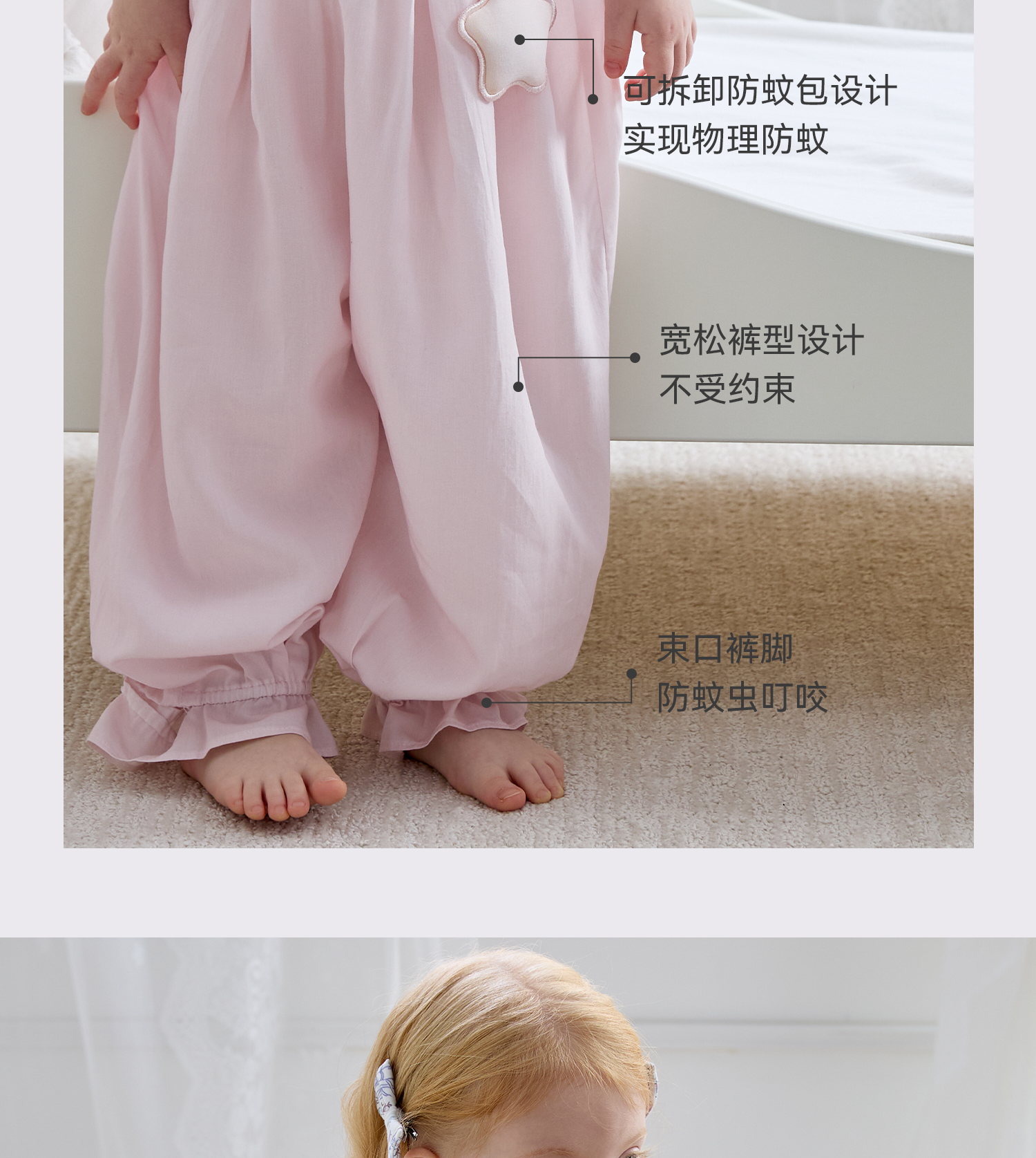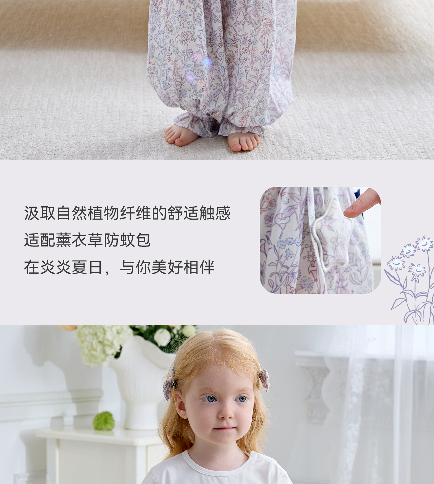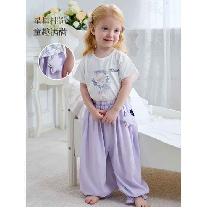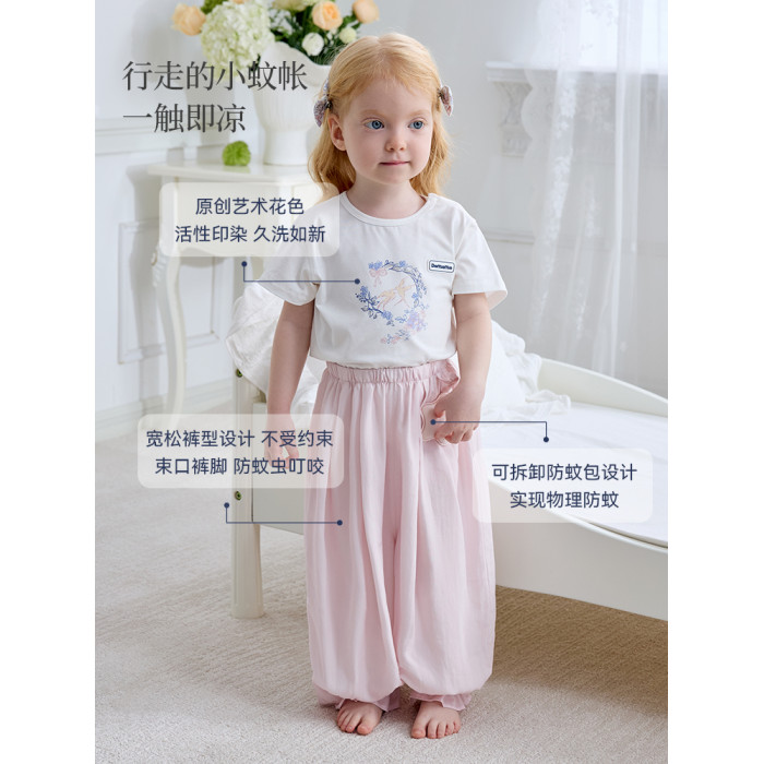 Domiamia兒童防蚊褲涼感寶寶束口長褲女童褲子夏季薄款透氣睡褲